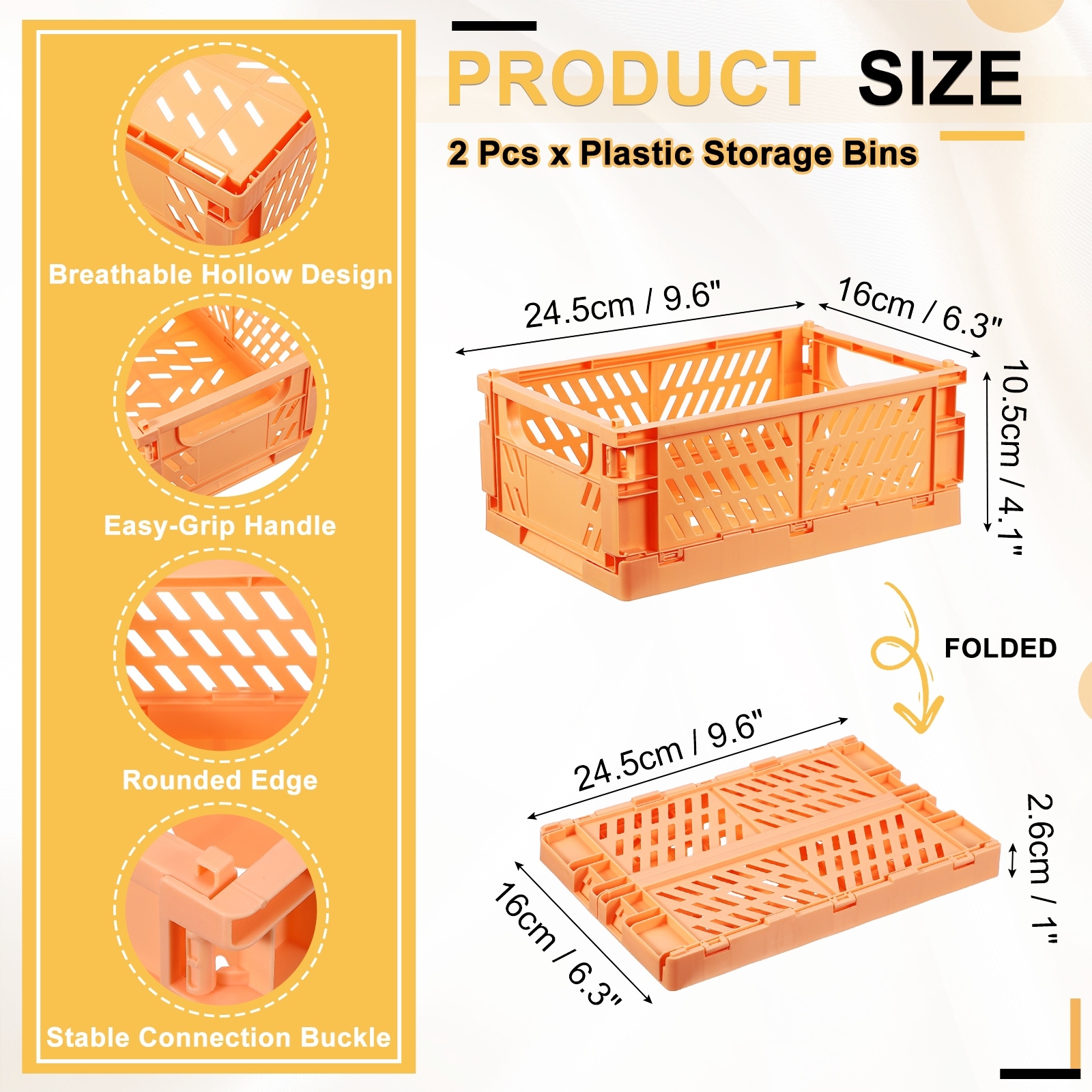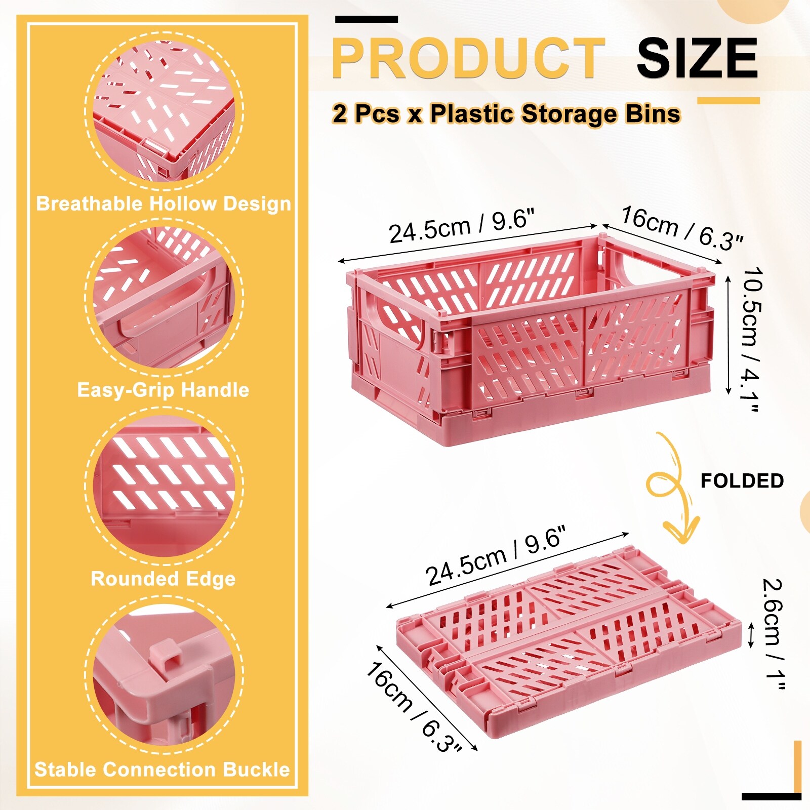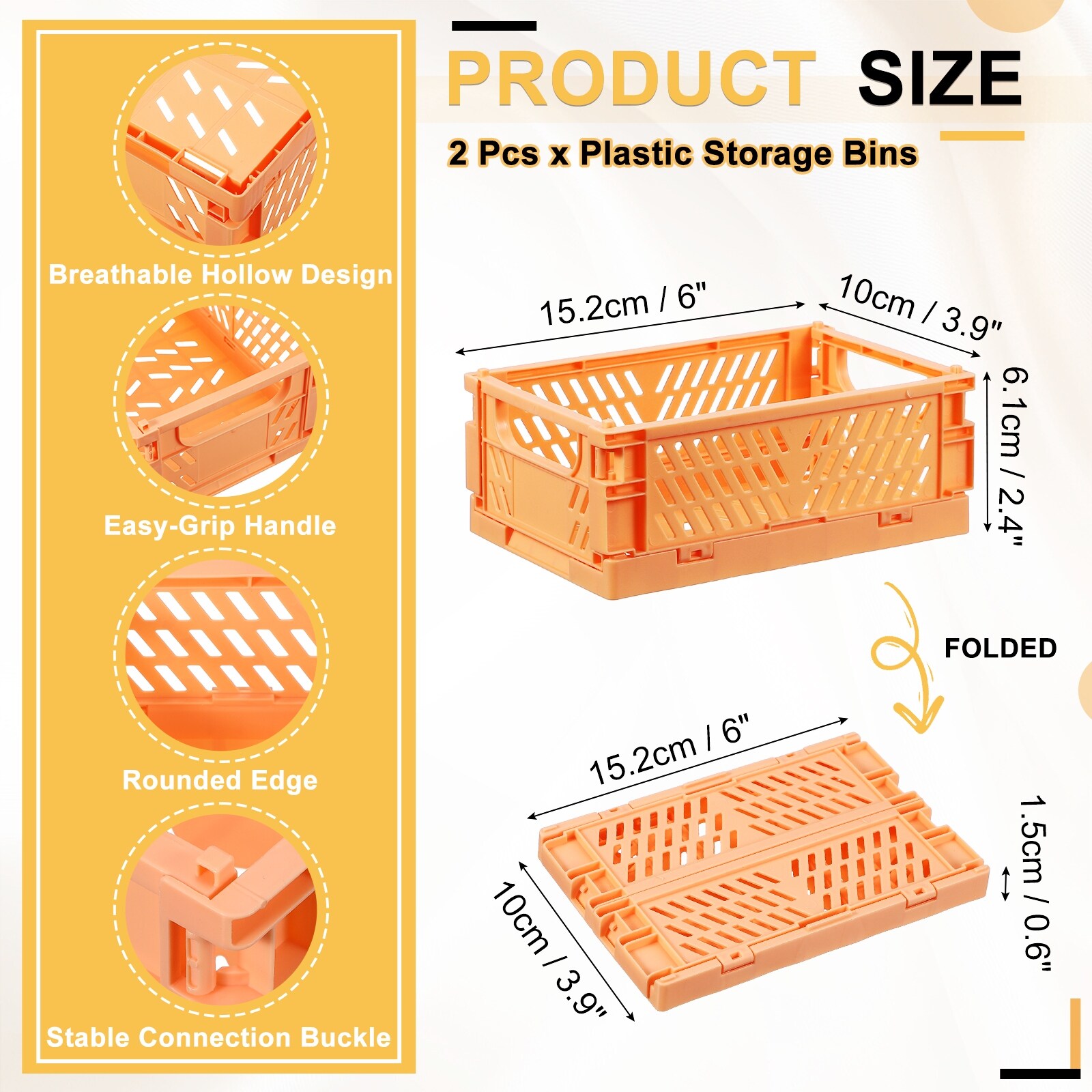 Small Plastic Storage Baskets, Stackable Foldable Storage Bins with Handles Collapsible Crate