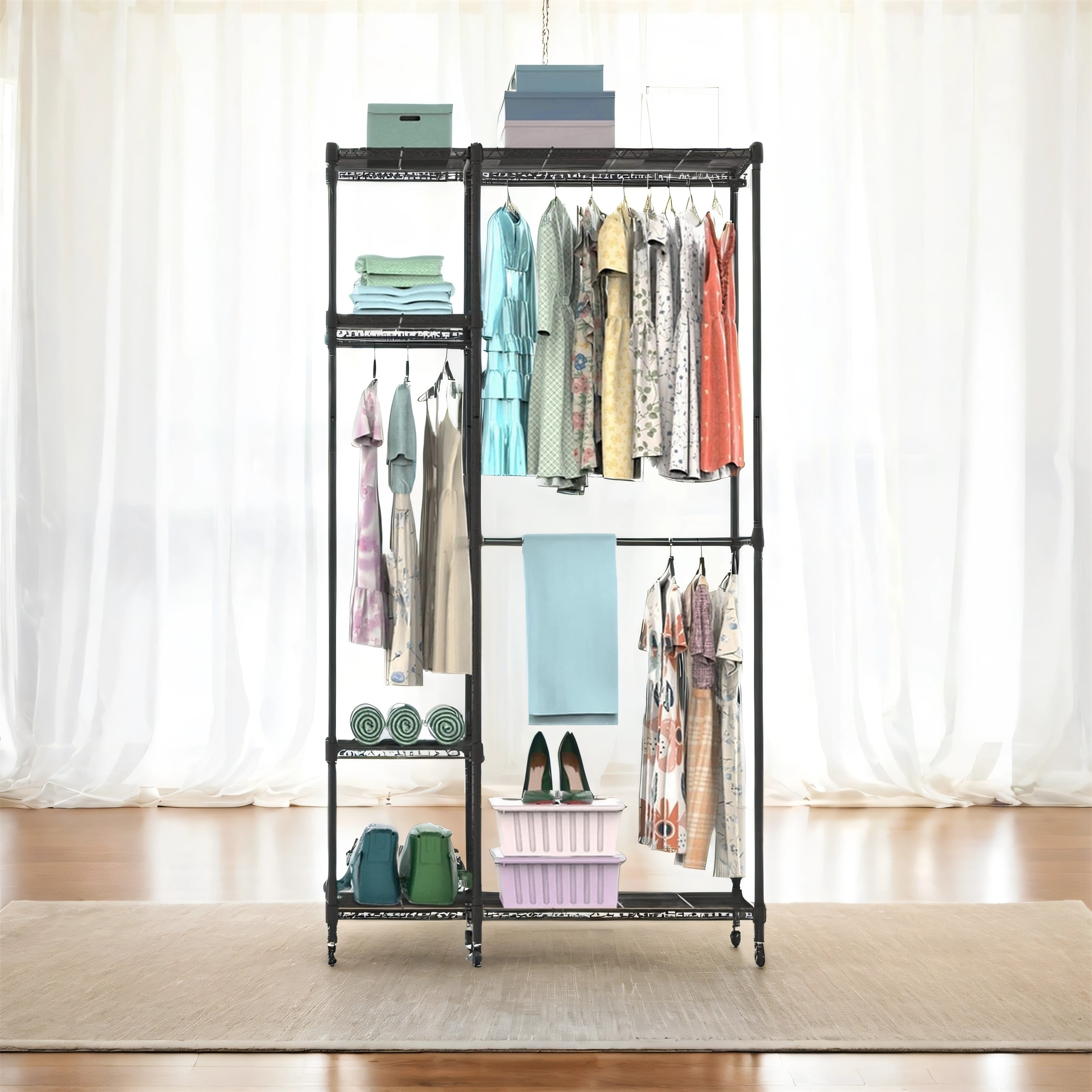 4-Tier Heavy Duty Garment Rack Organizer with Wheels, 463LB Capacity