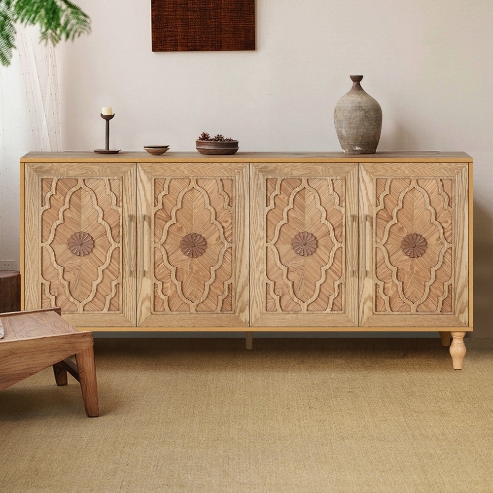 Buffet Cabinet with Solid Wood Legs and Adjustable Shelves