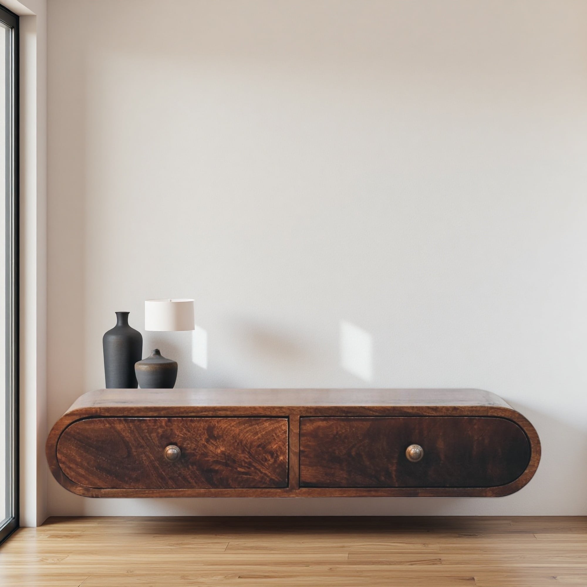 31.5" Solid Mango Wood Wall-Mounted Console Table with Walnut Finish & 2 Drawers