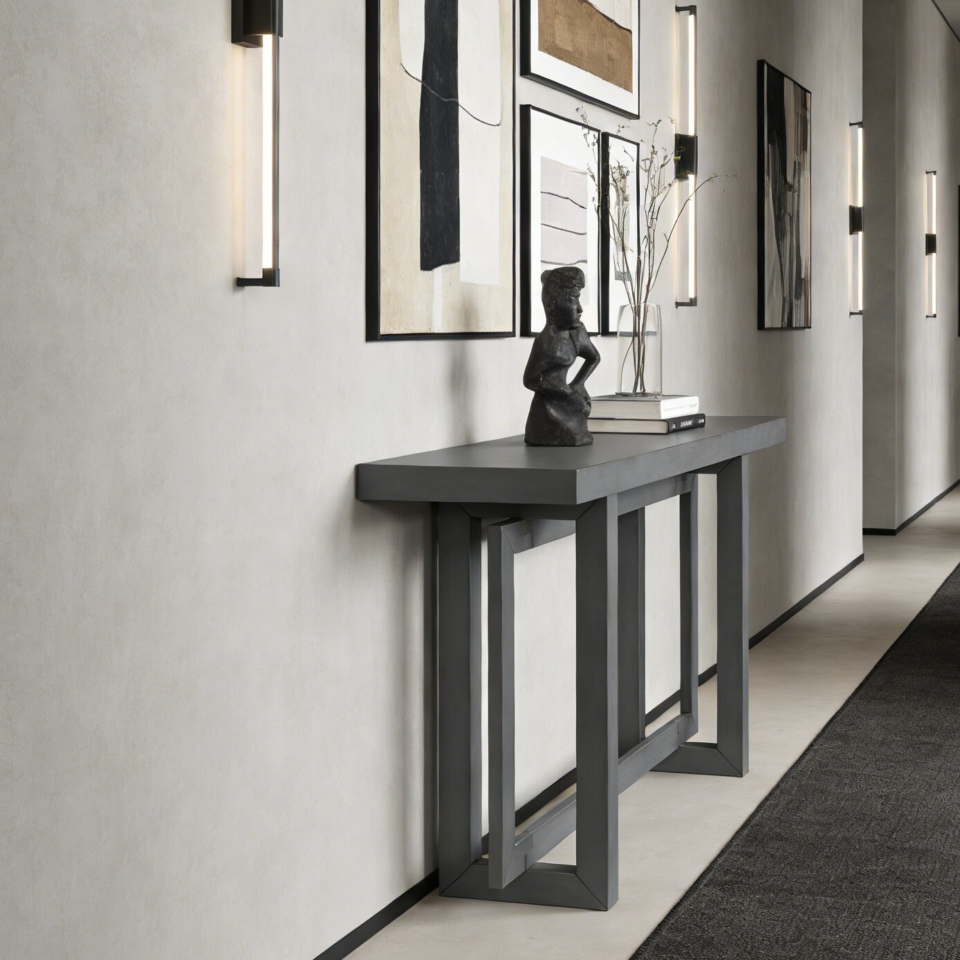 Modern Style Console Table with Unique Triple Rectangle Design and Wood Legs for Hallway, Living Room