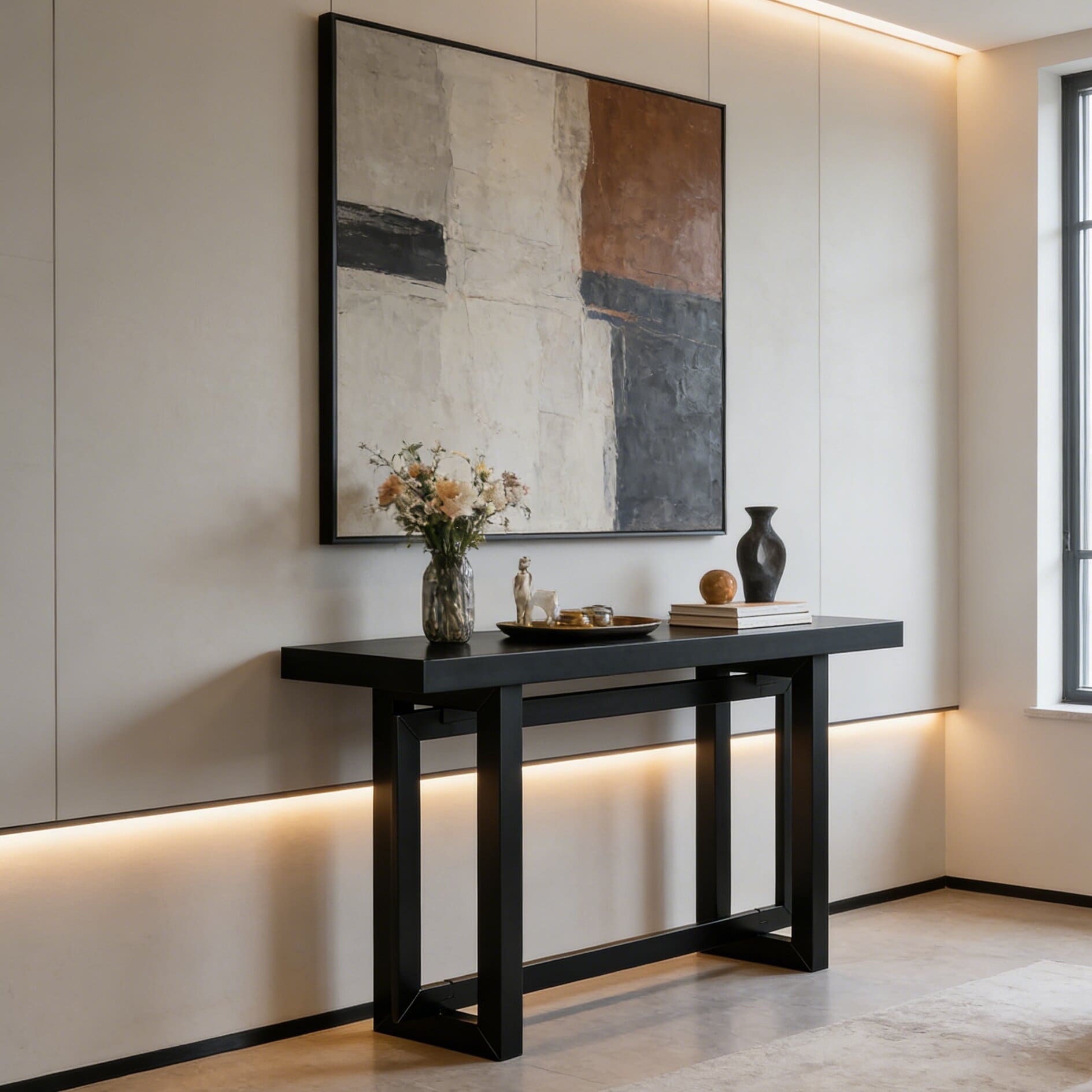 Modern Style Console Table with Paulownia Solid Wood Veneer for Living Room and Entryway.