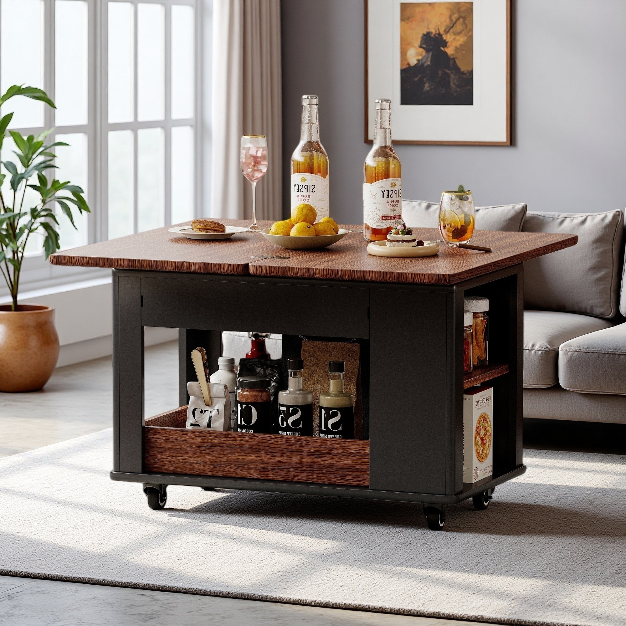 Modern 27.6" Coffee Table/Side Table with Foldable Top, Casters, and Multi-Tier Storage