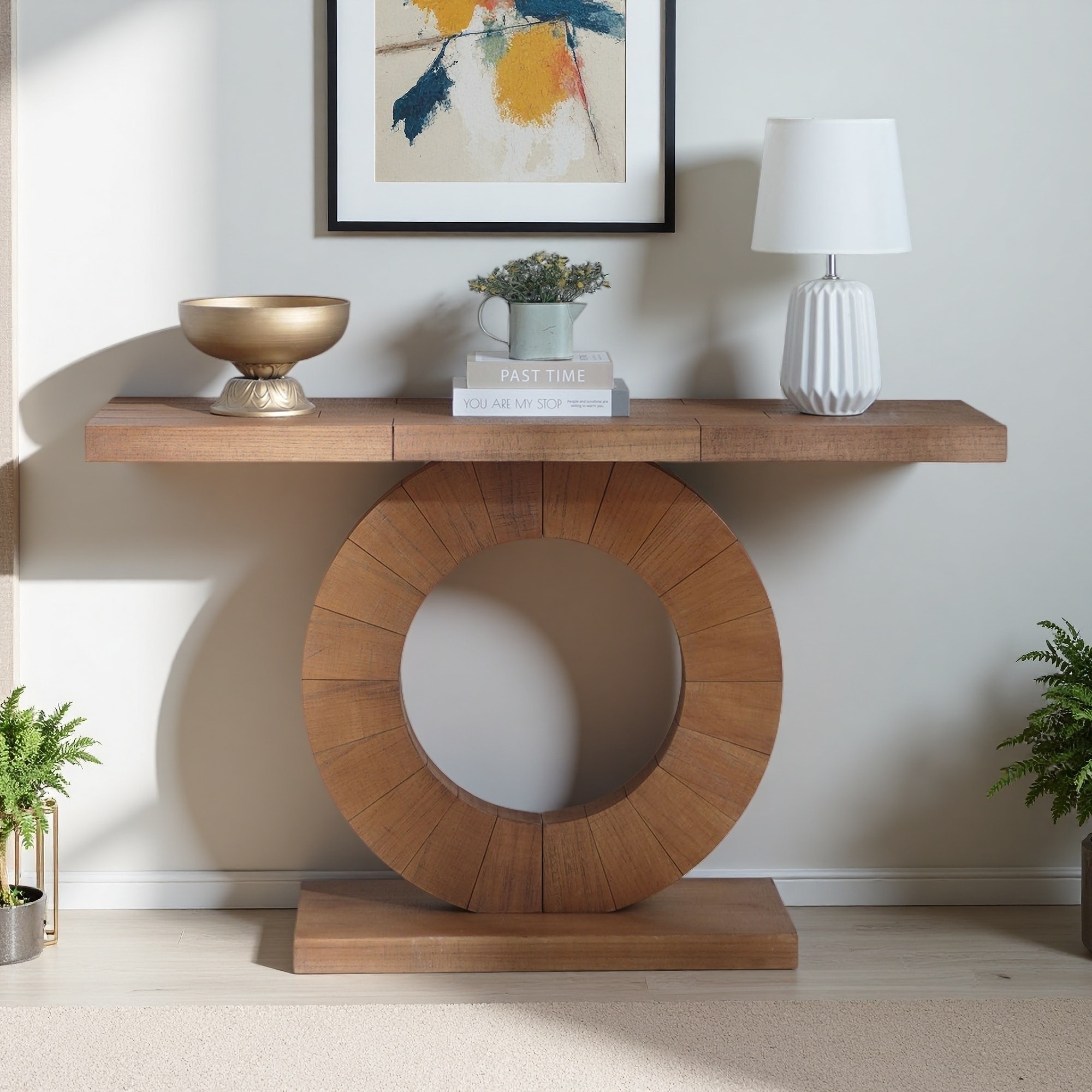 53.2inch Engineered Wood Modern Console Table with Circular Base - Minimalist Entryway Table with Sleek Design for Living Room
