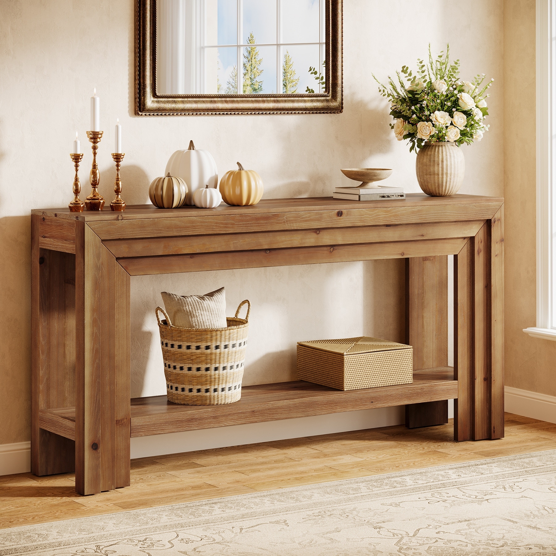 63-Inch Entryway Table, Solid Wood Farmhouse Console Tables