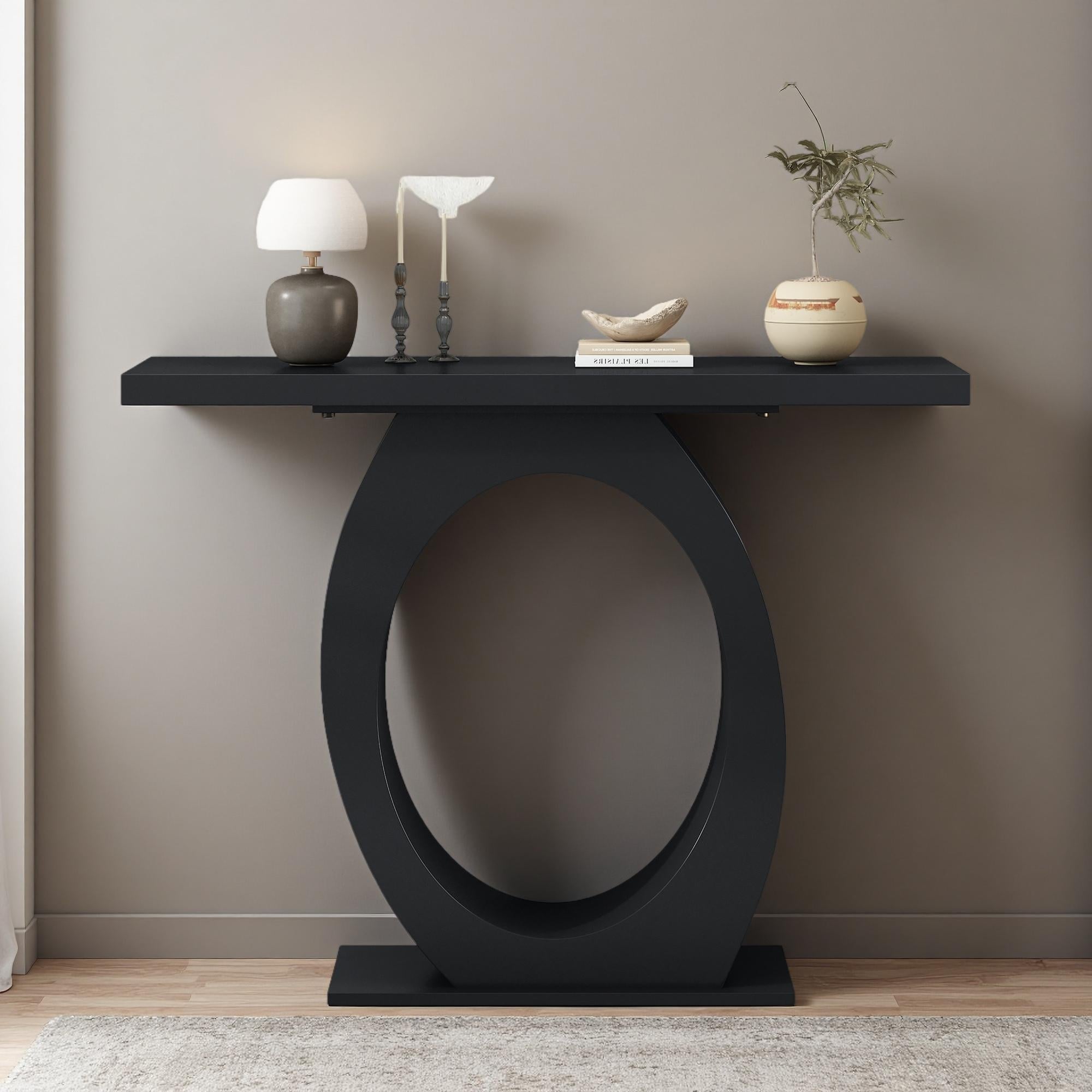39.4" MDF + Acacia Veneer Console Table with Egg-Shaped Base & Gloss Finish - Modern Sleek Entryway Table