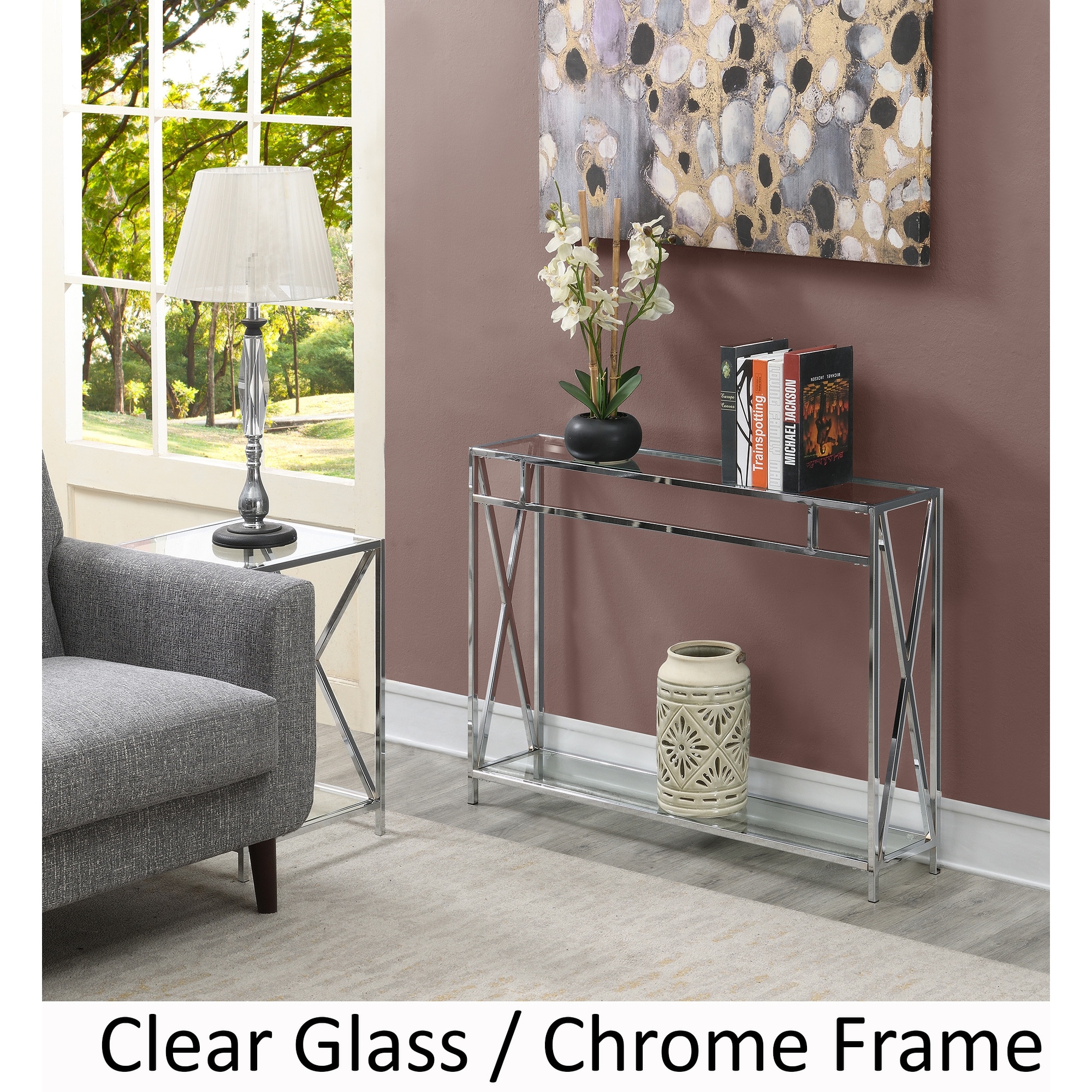 Convenience Concepts Oxford Chrome Console Table with Shelf