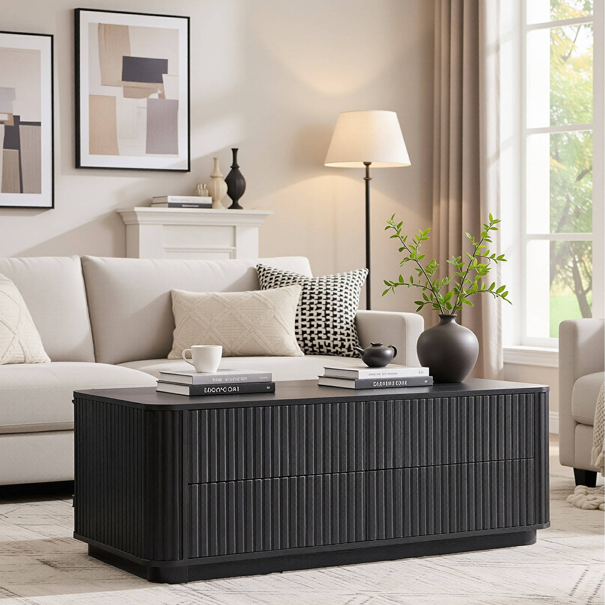 Fluted Coffee Table w/ 4 Drawers, Modern Center Table for Living Room