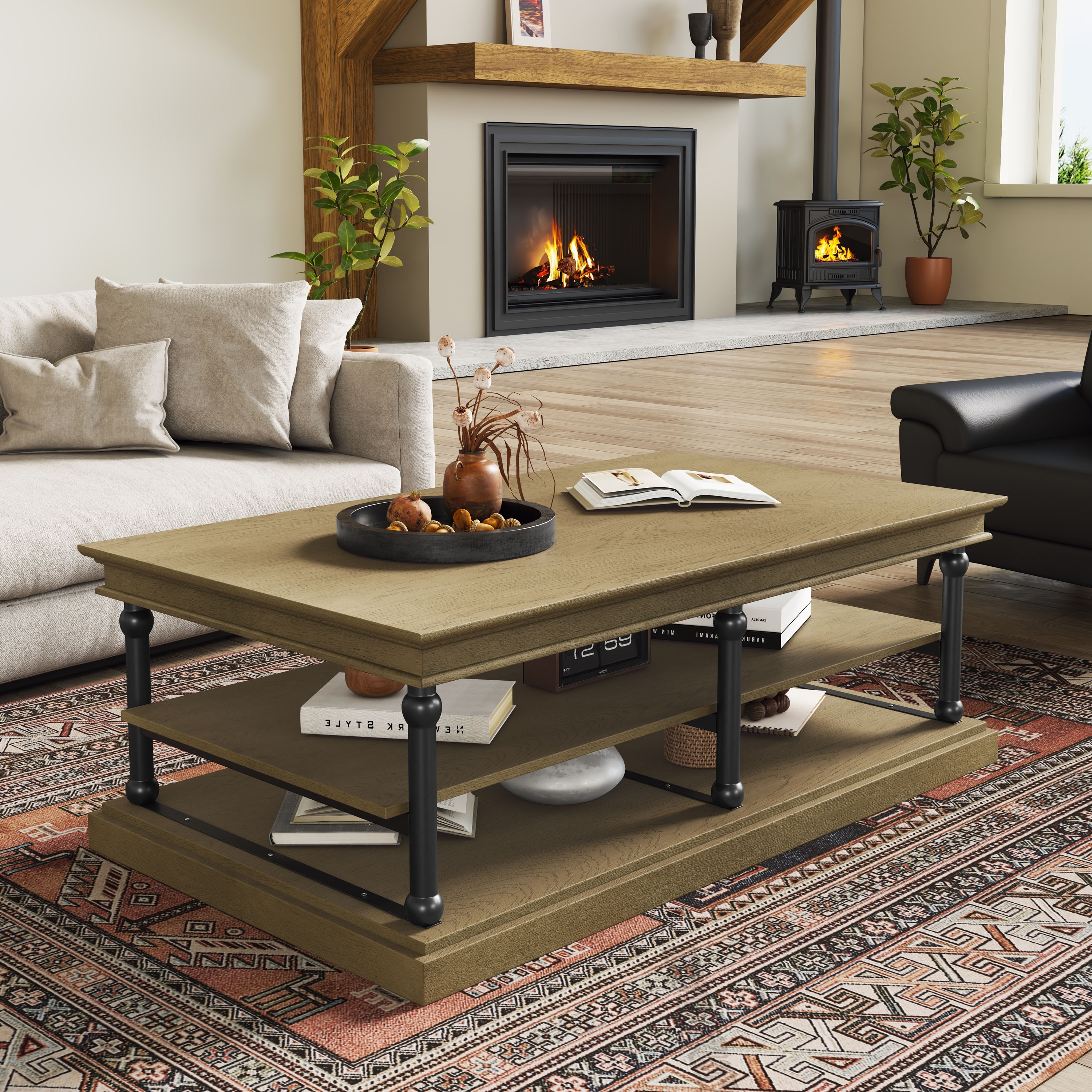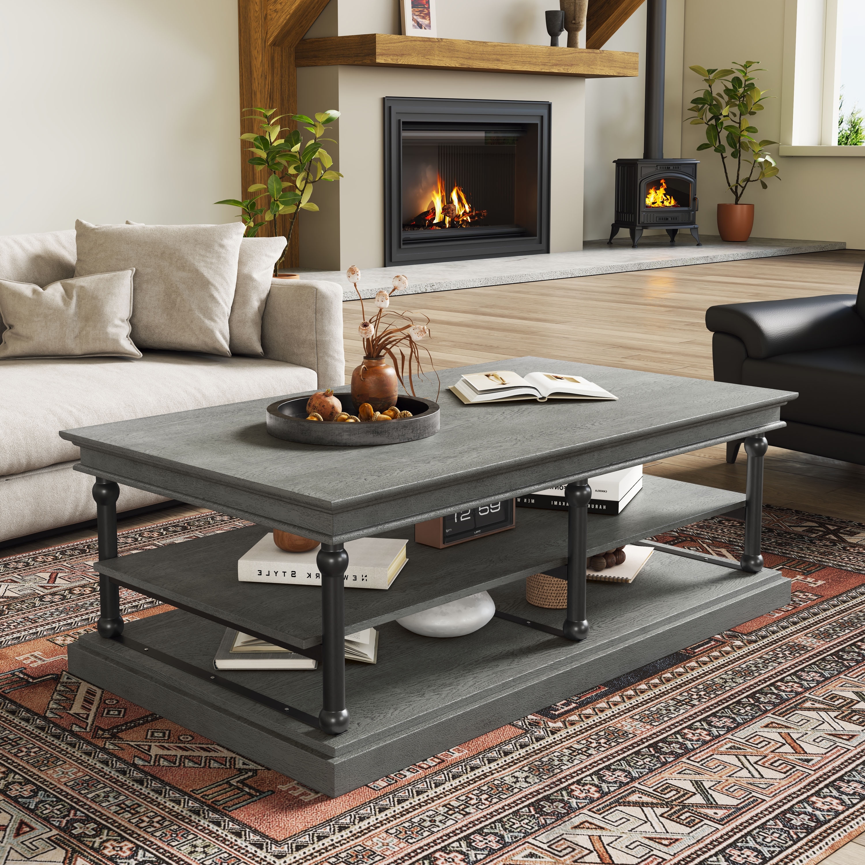 Wood Coffee Table With Two Open Storage Shelves And Modern Design