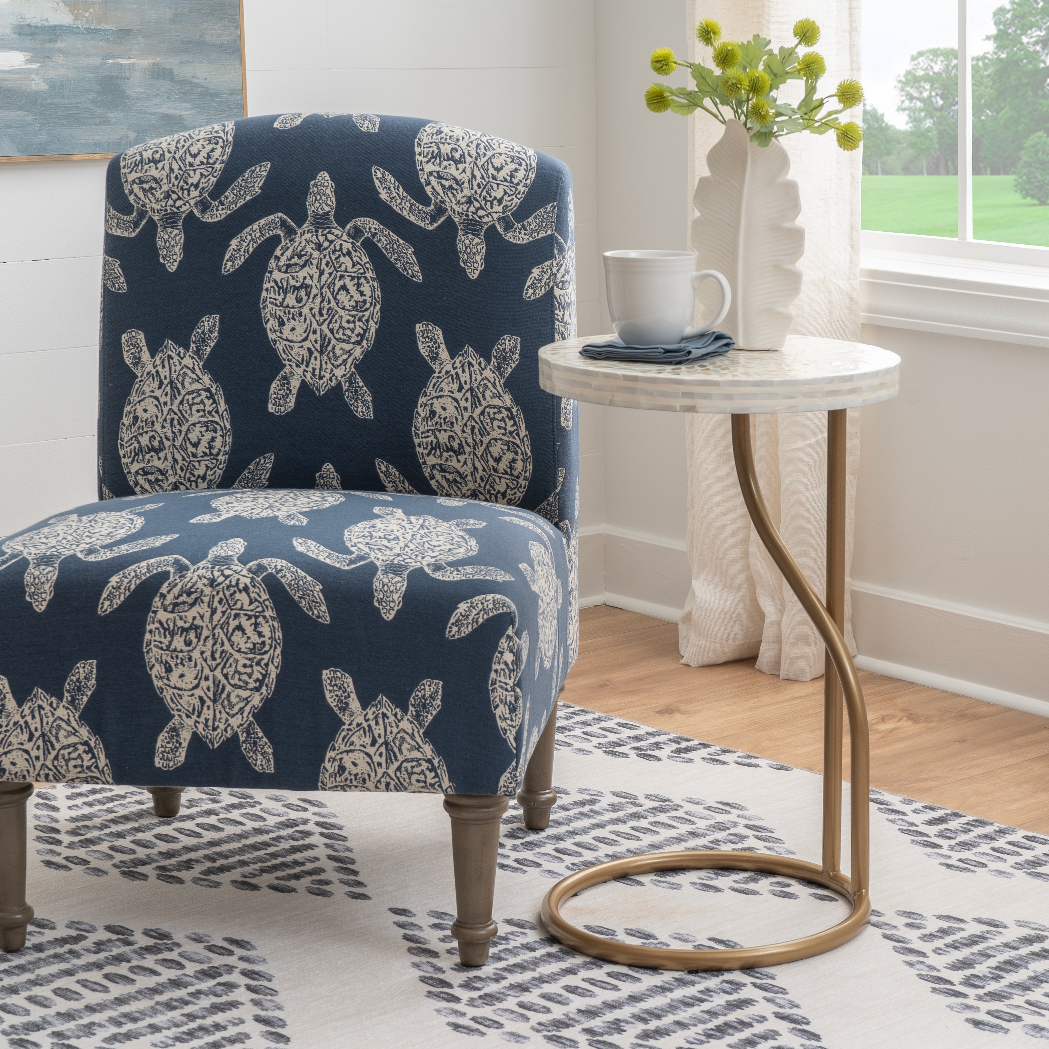Linon Padget Black Capiz Round Metal Side Table
