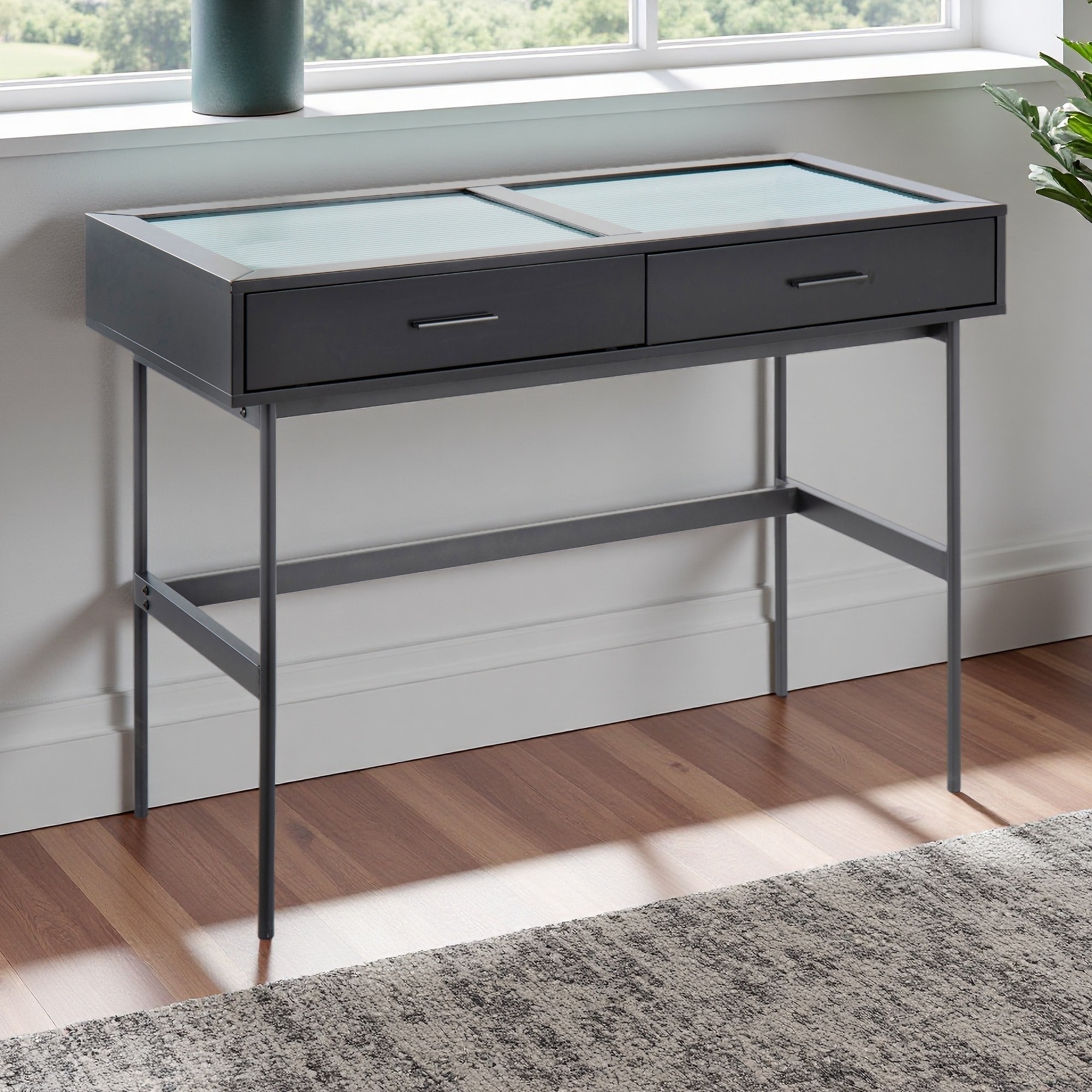43.5" Steel & Glass Console Table with Wood Accents