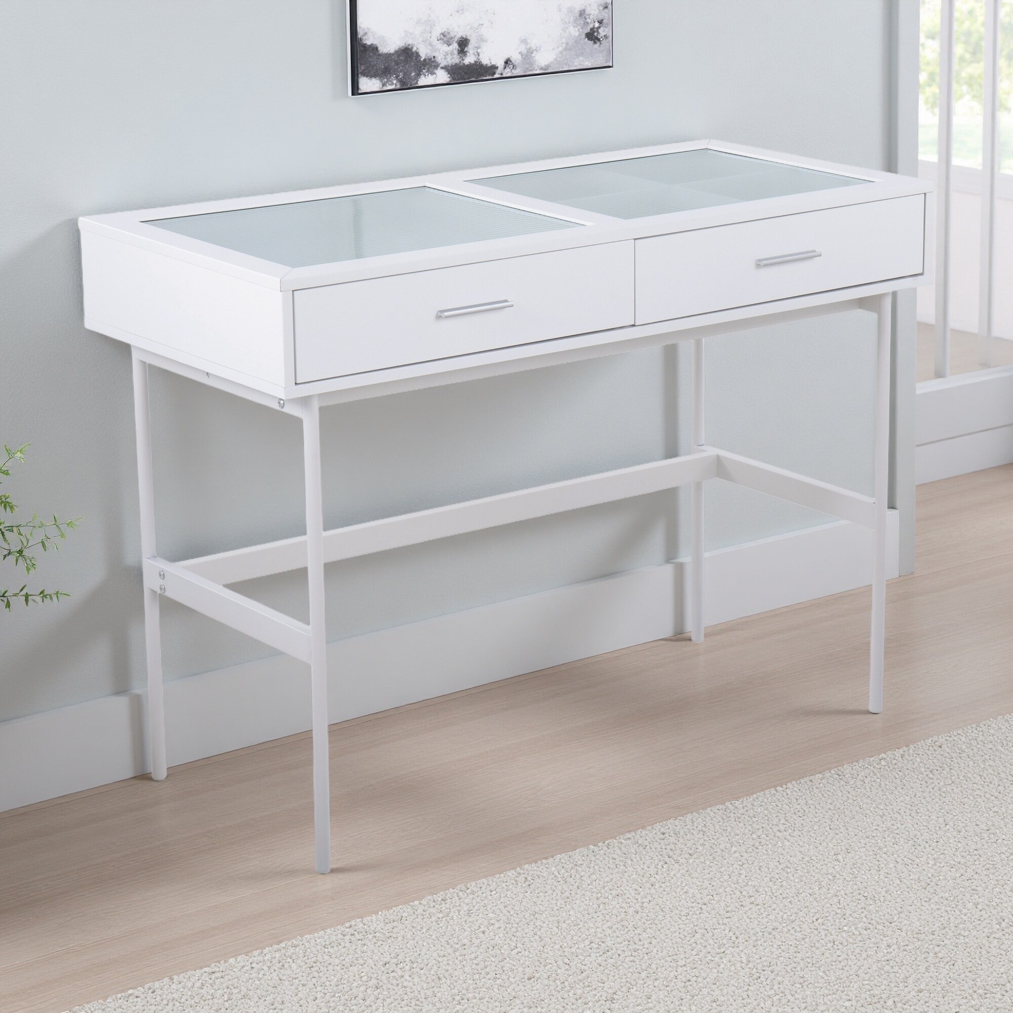 43.5" Steel & Glass Console Table with Wood Accents