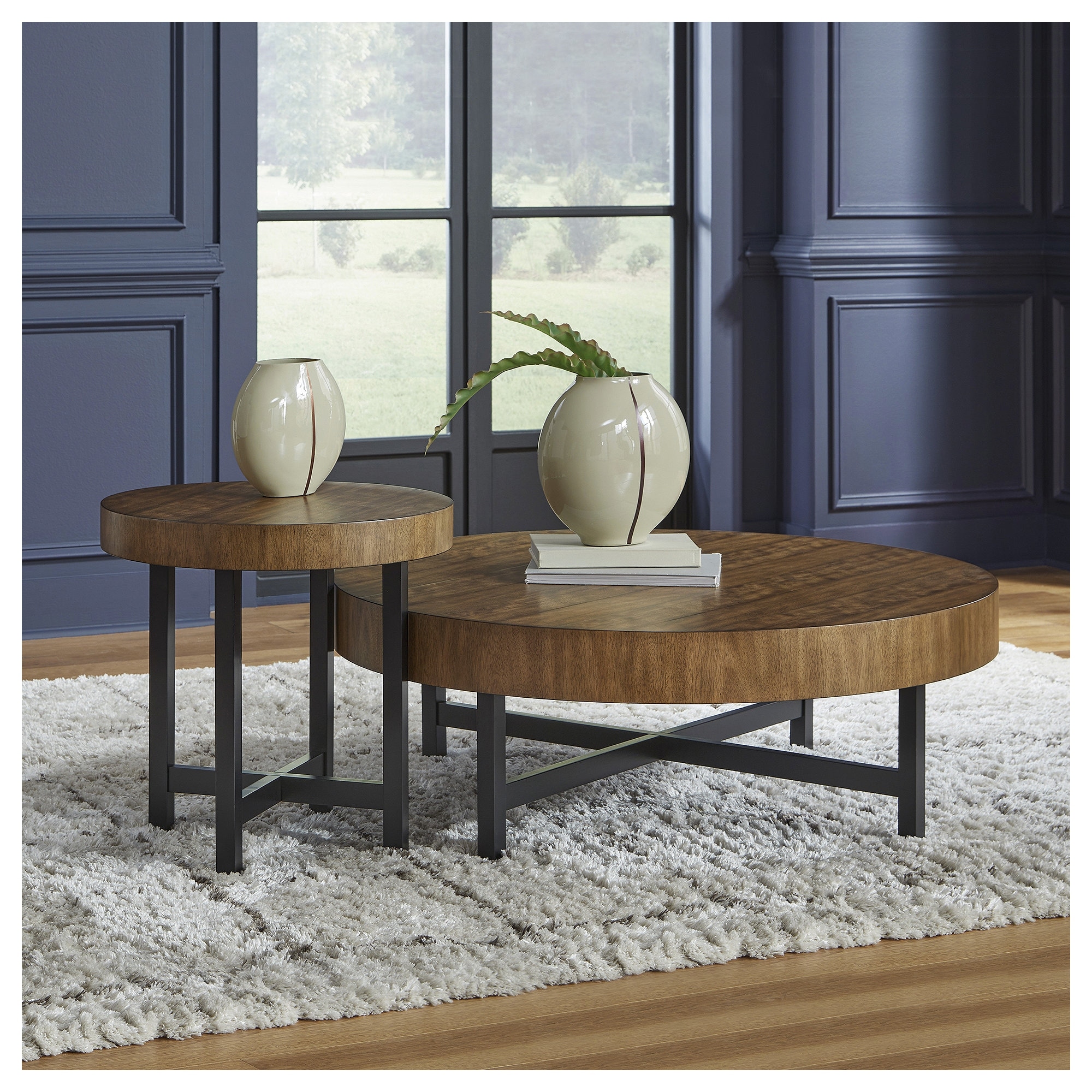 Signature Design by Ashley Steenlage Brown/Black Table (Set of 2) - 48" W x 48" D x 17" H