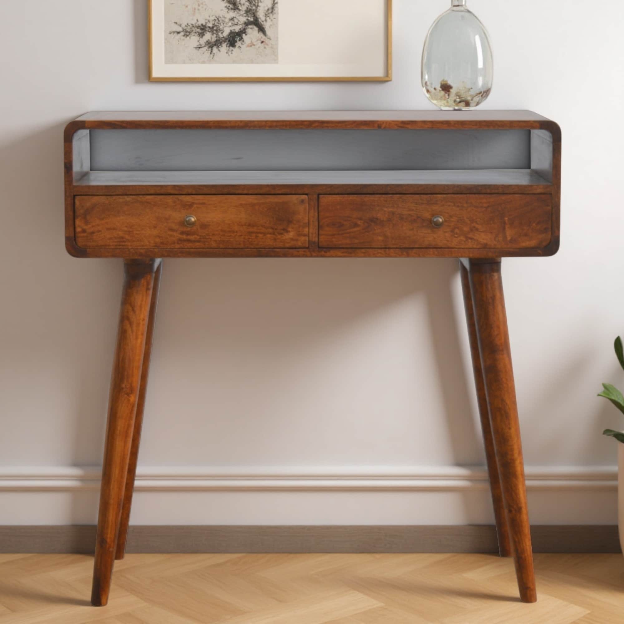 35.4" Solid Mango Wood Curved Console Table with 2 Drawers, and Nordic-Style Legs