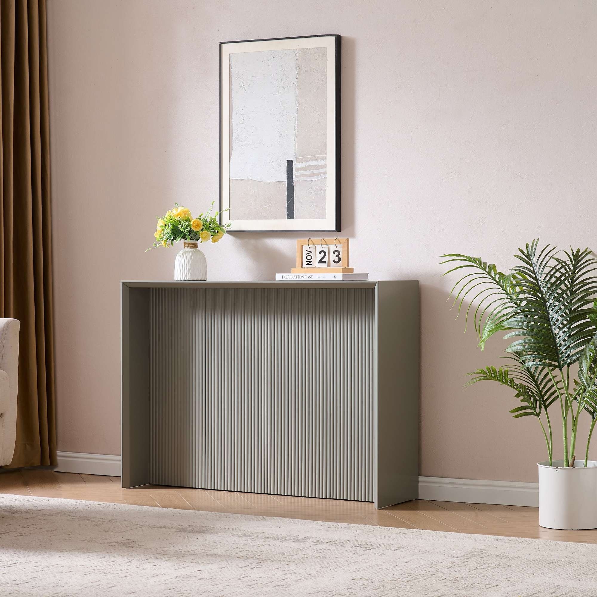 Lira Contemporary Wood Ripple Front Console Table