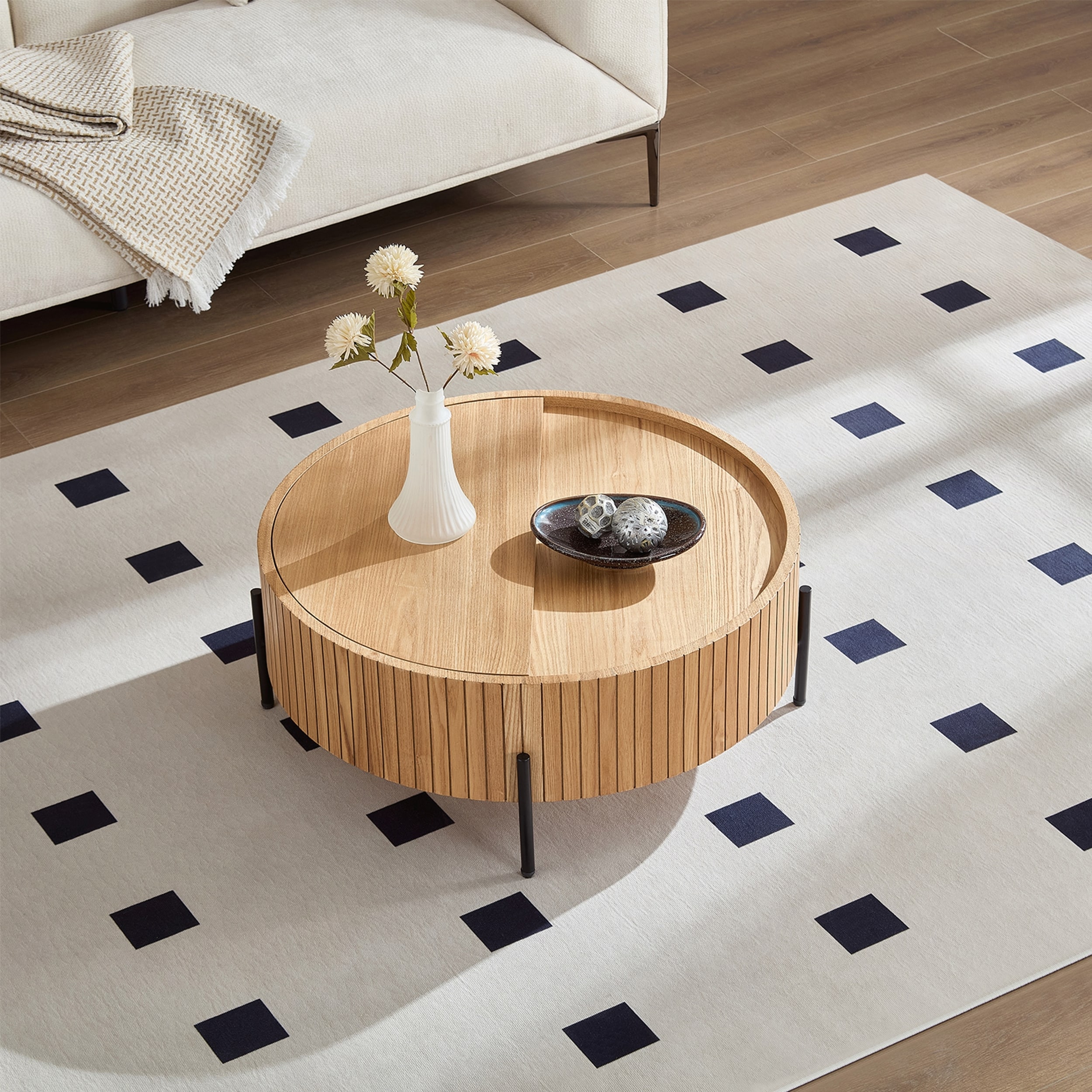 Round Coffee Table with Storage for Living Room, Bedroom, and Office