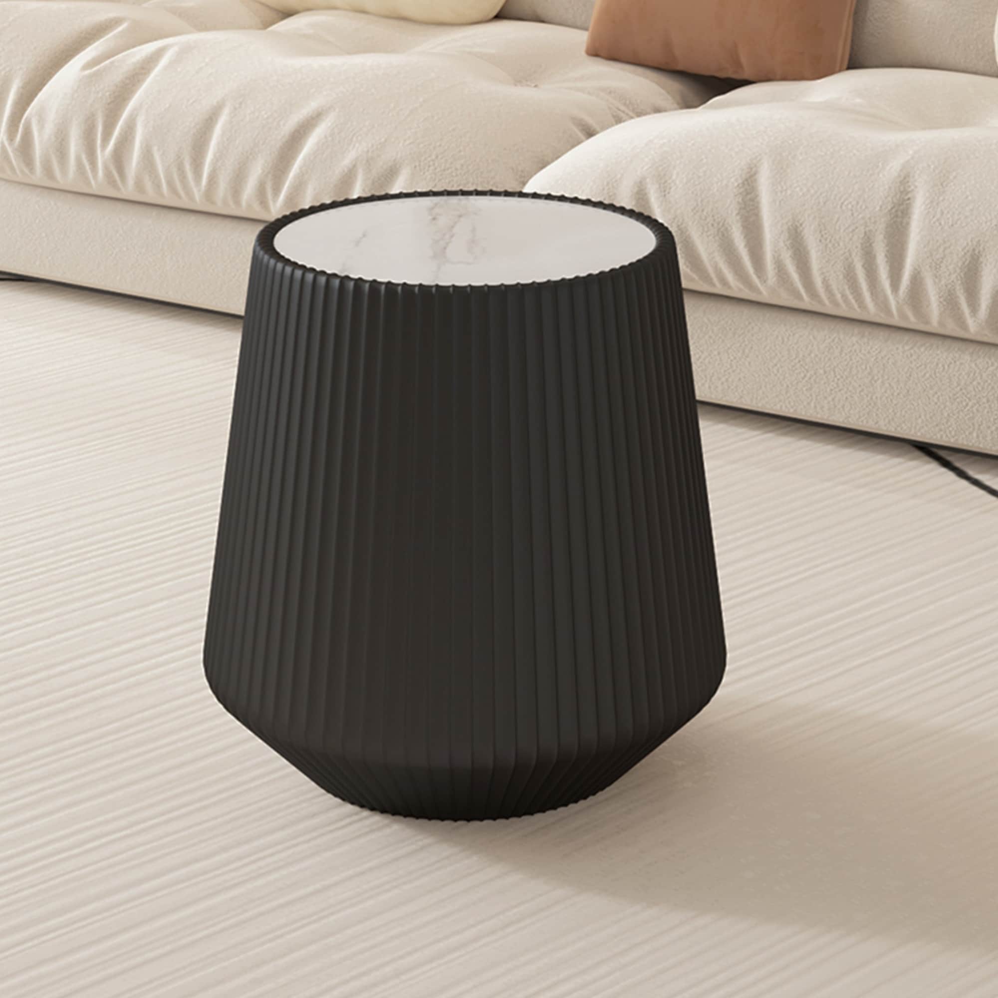 Modern Coffee Table with Sintered Stone Top, Accent Coffee Table for Living Room, Cup-Shaped End Table with Faux Leather Frame