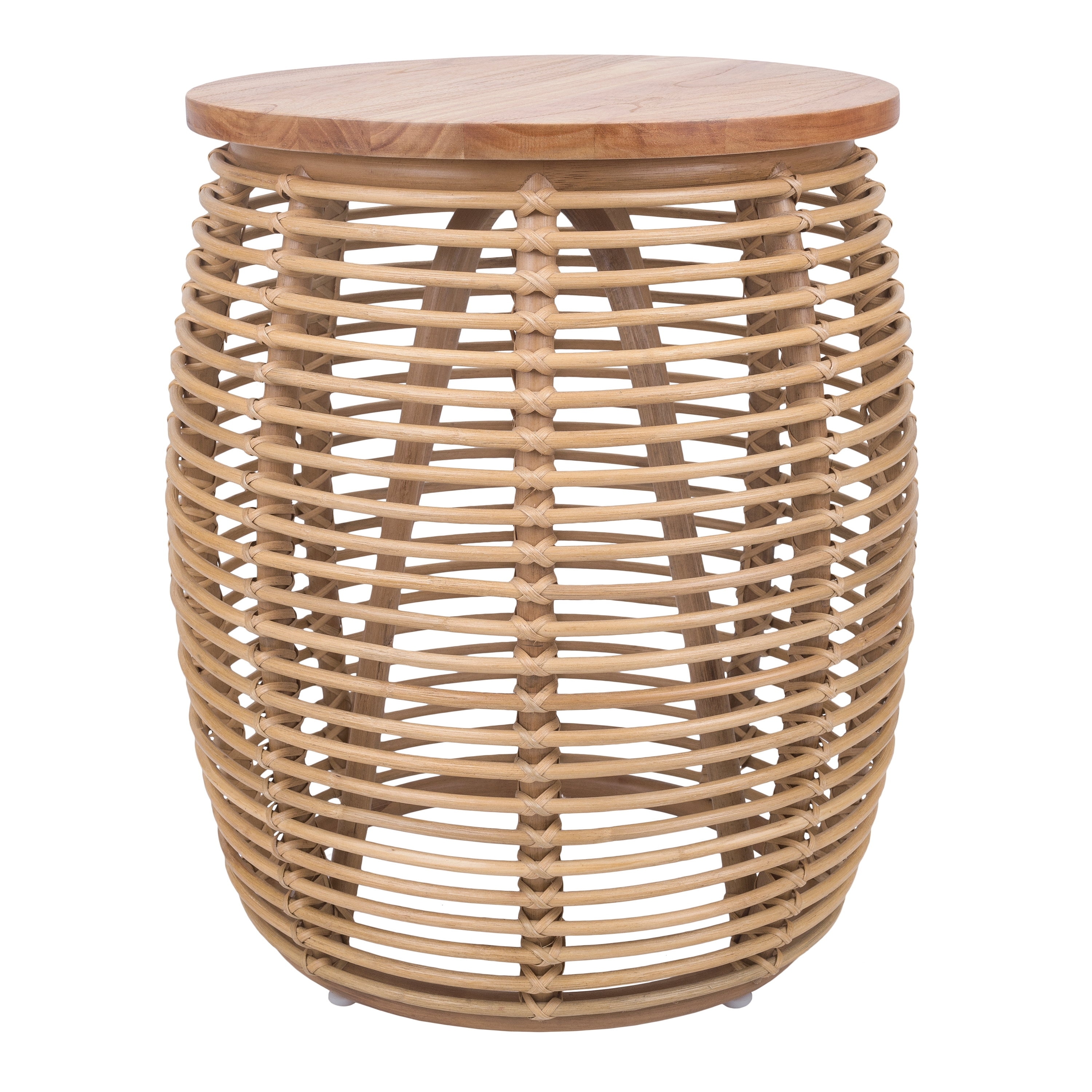 NPD Furniture Iris Round Rattan End Table with Wood Top
