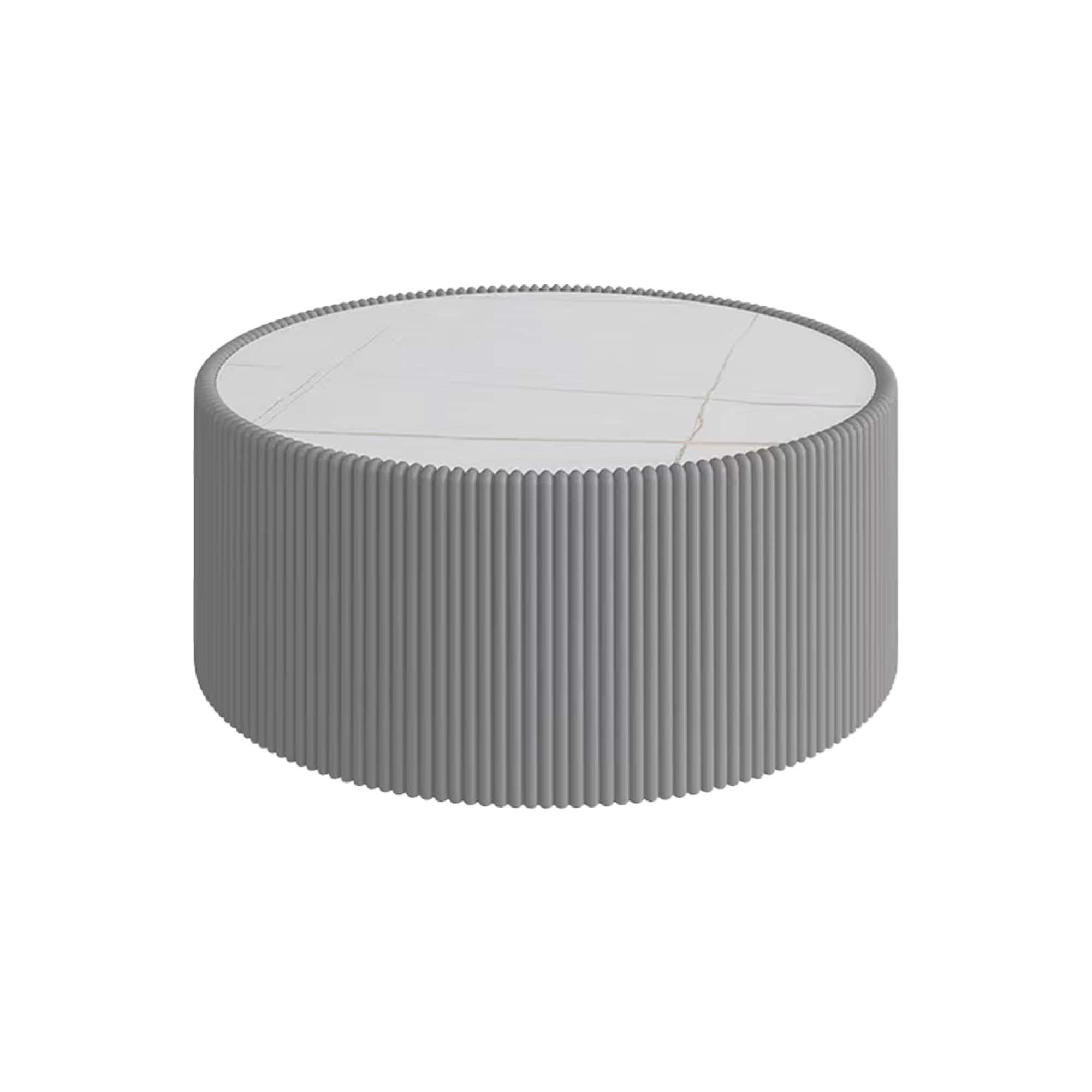 Modern Drum Coffee Table, Sintered Stone Coffee Table with PU Leather and Aluminum Alloy Base