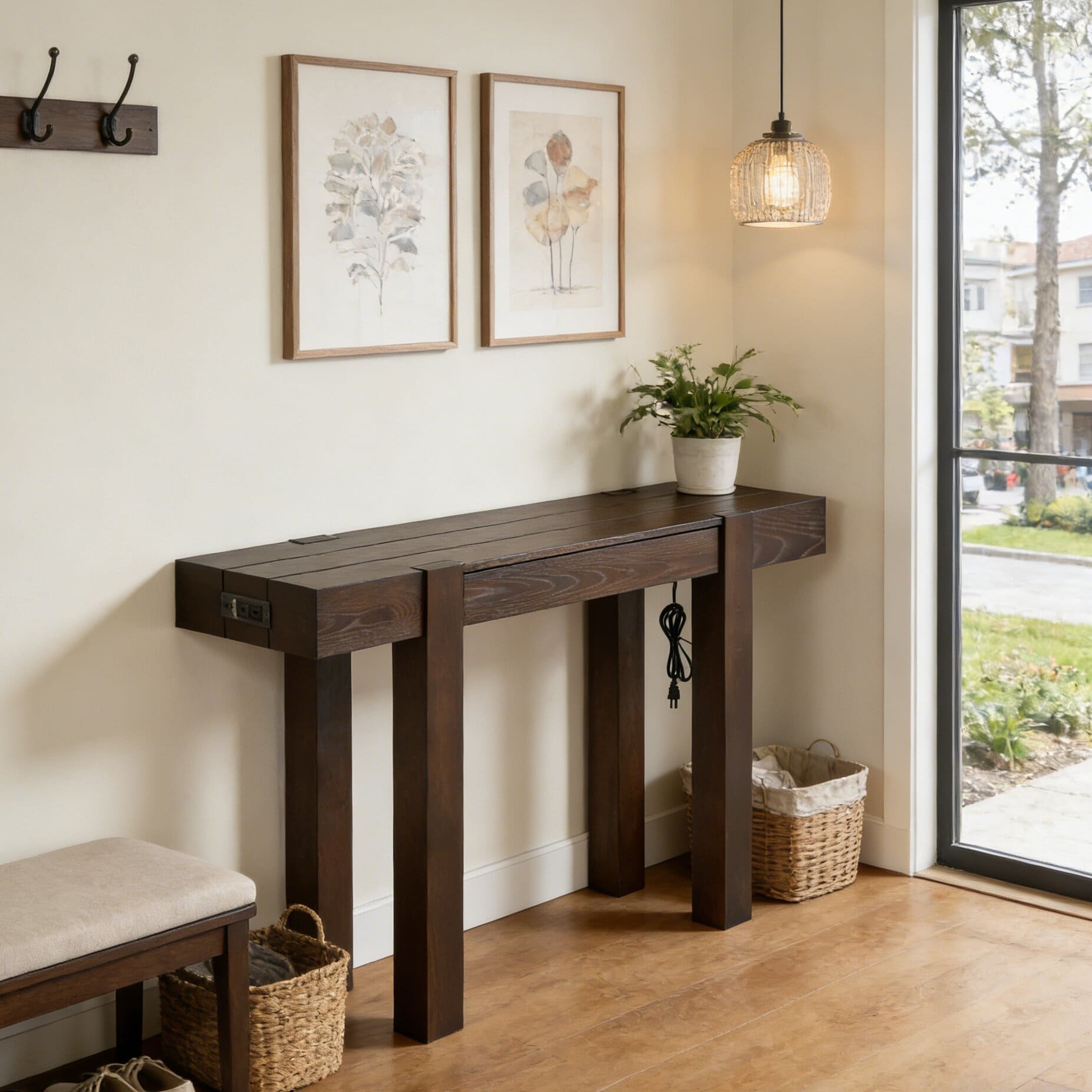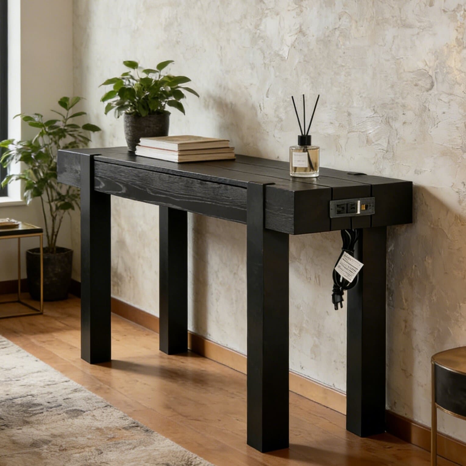 Modern Style Console Table with Hidden Drawer, Side Power Outlet for Entryways, Living Rooms