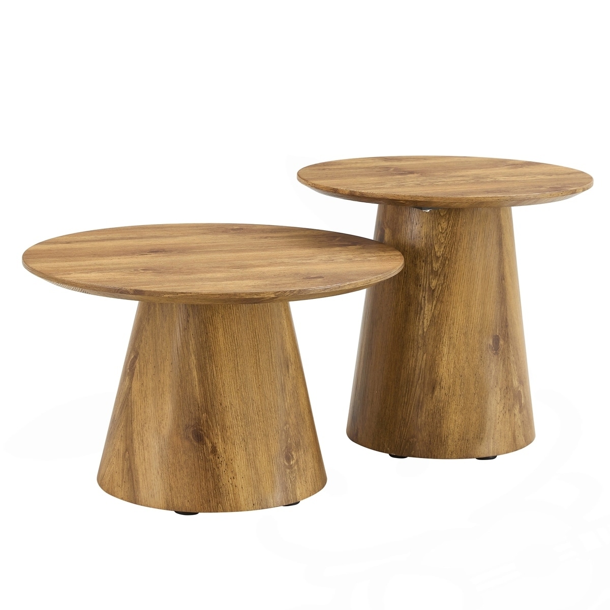 Mid-Century Coffee Table Set with Sliding Tambour Door - Round Fluted End Table with Storage
