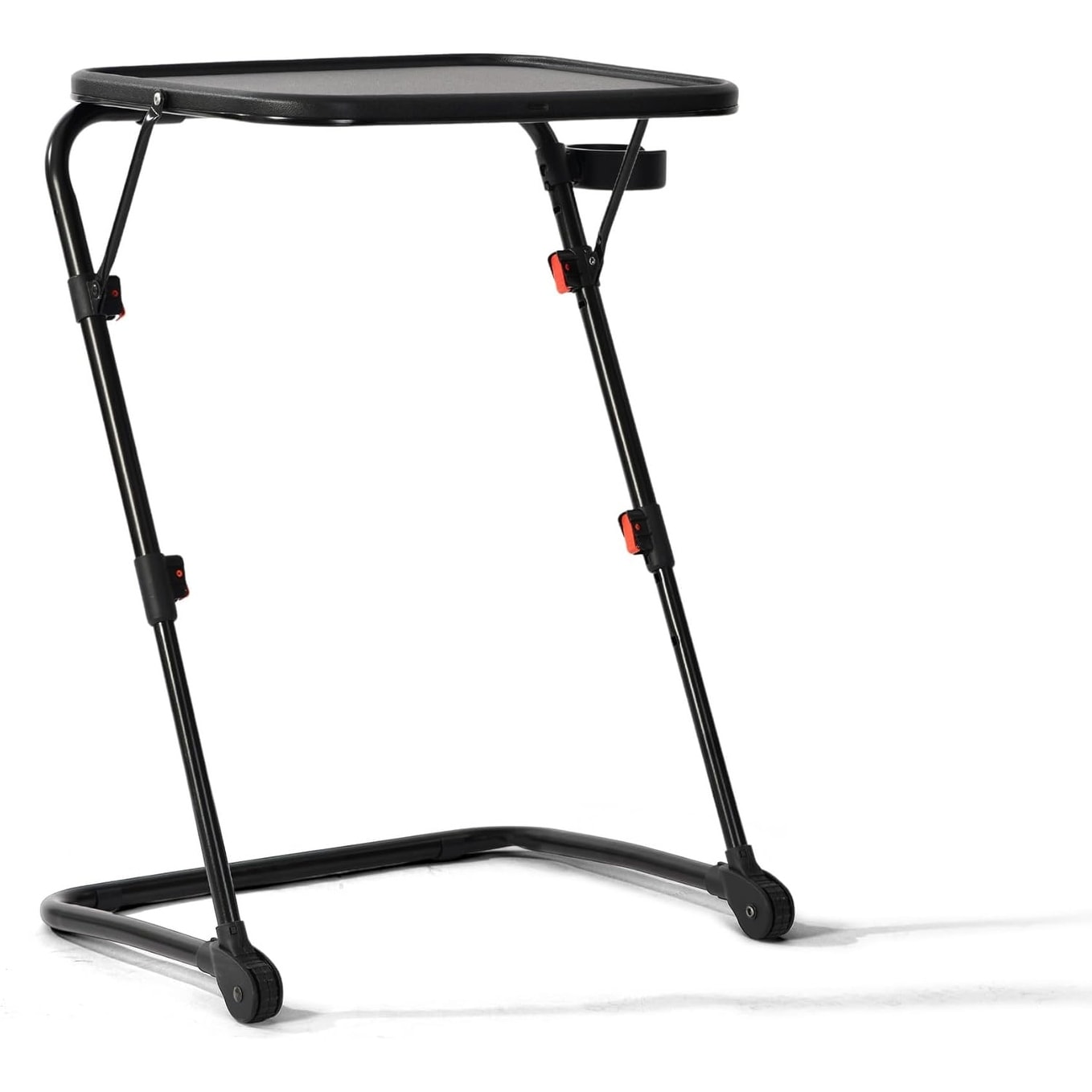 Z-Shaped End Table with Cup Holder, Foldable Side Tray for Sofa, Slide Under Couch Desk, Black