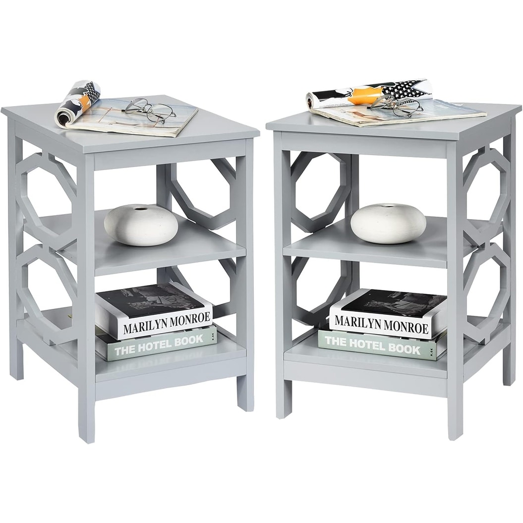 Nightstand Set of 2, Wooden Side Table with Storage, Bedside End Table for Bedroom or Living Room, Easy Assembly (Grey)