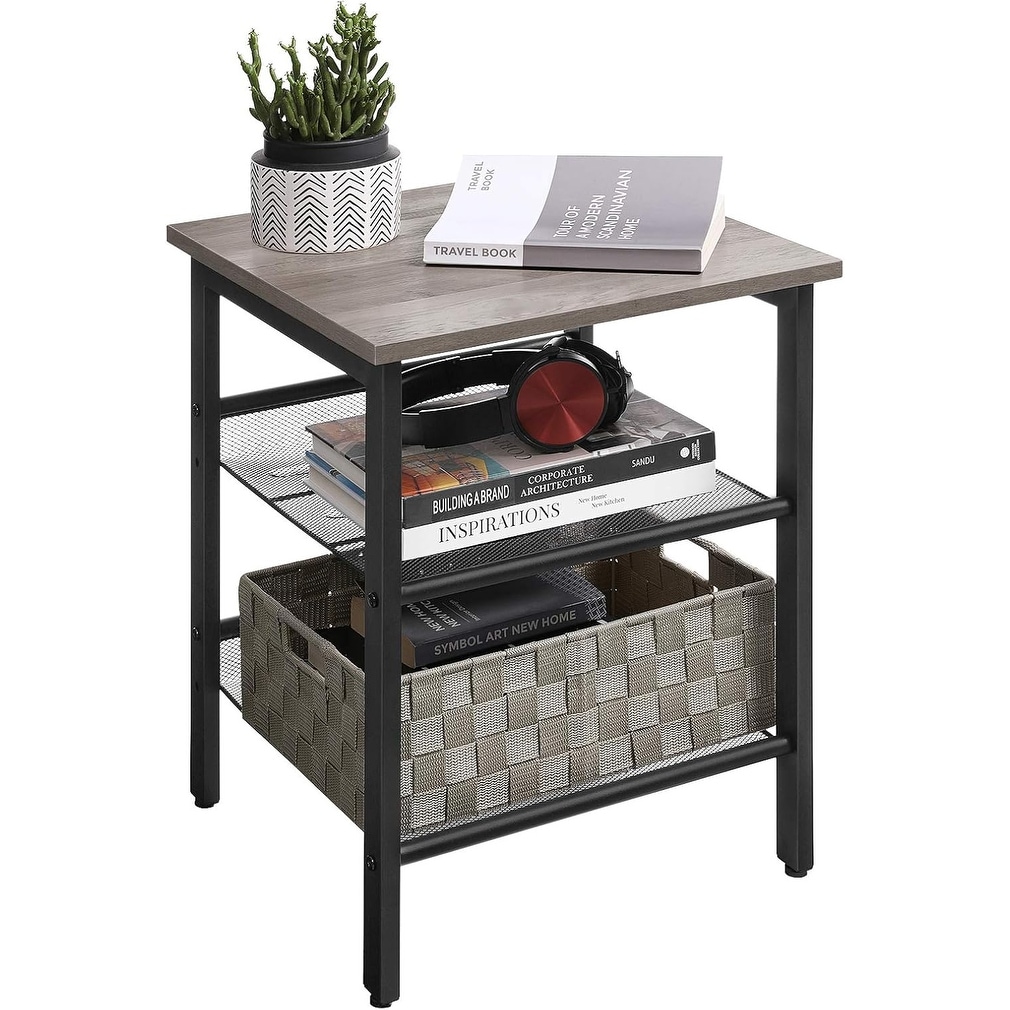 Industrial End Table with 2 Adjustable Mesh Shelves, Sturdy Metal Frame Side Table for Living Room or Bedroom, Easy Assembly
