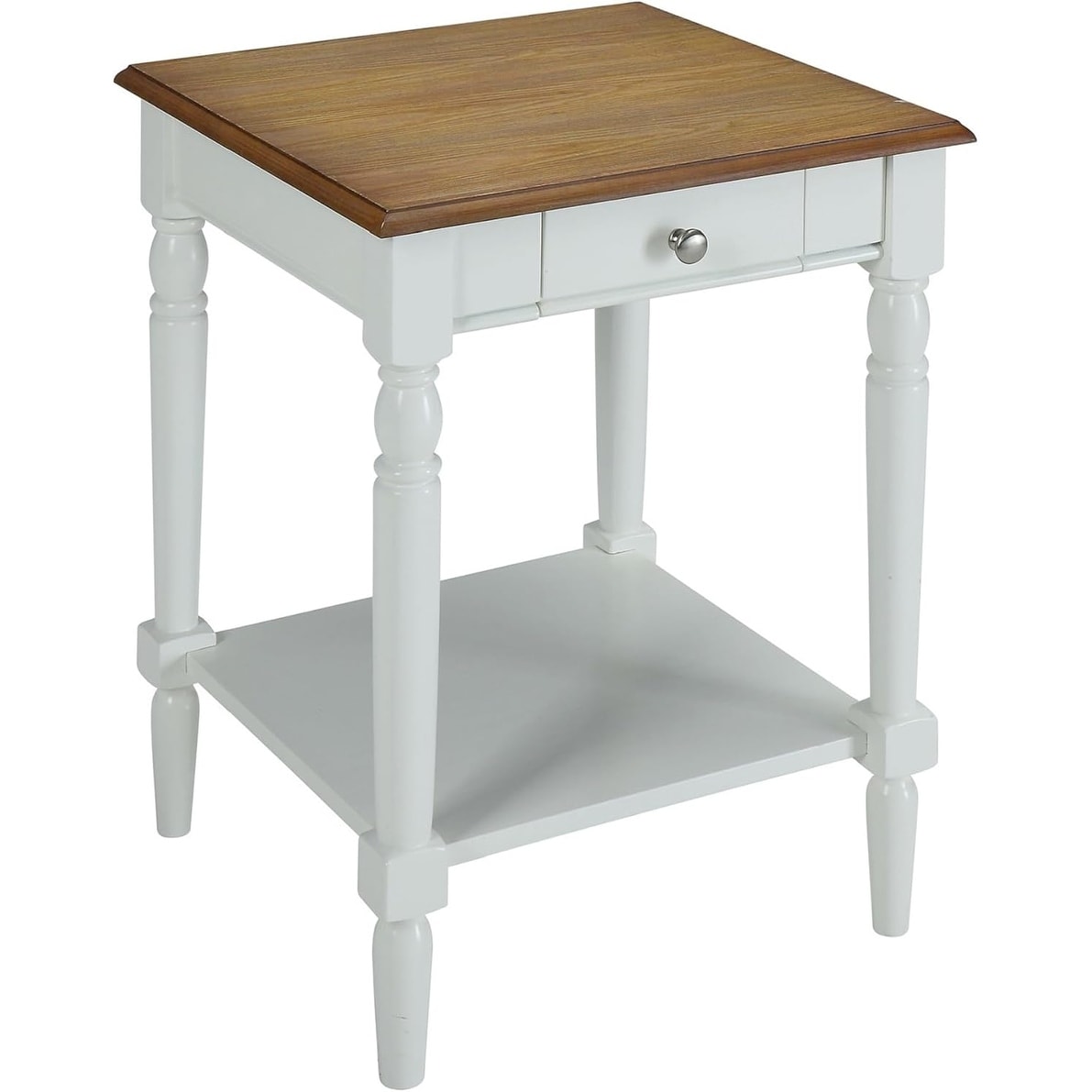 French Country End Table 18" - Farmhouse Side Table with Drawer & Shelf, Driftwood/White