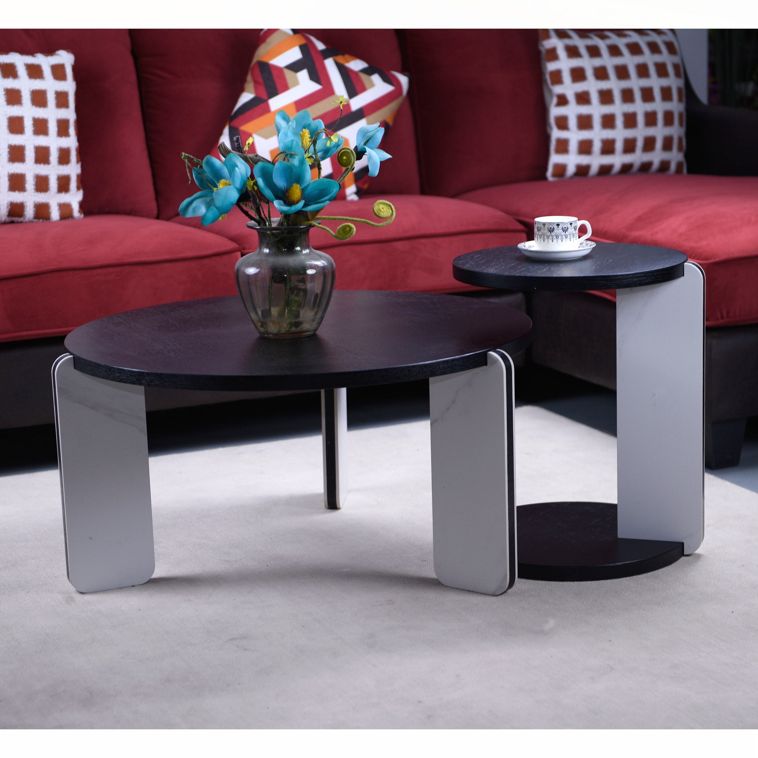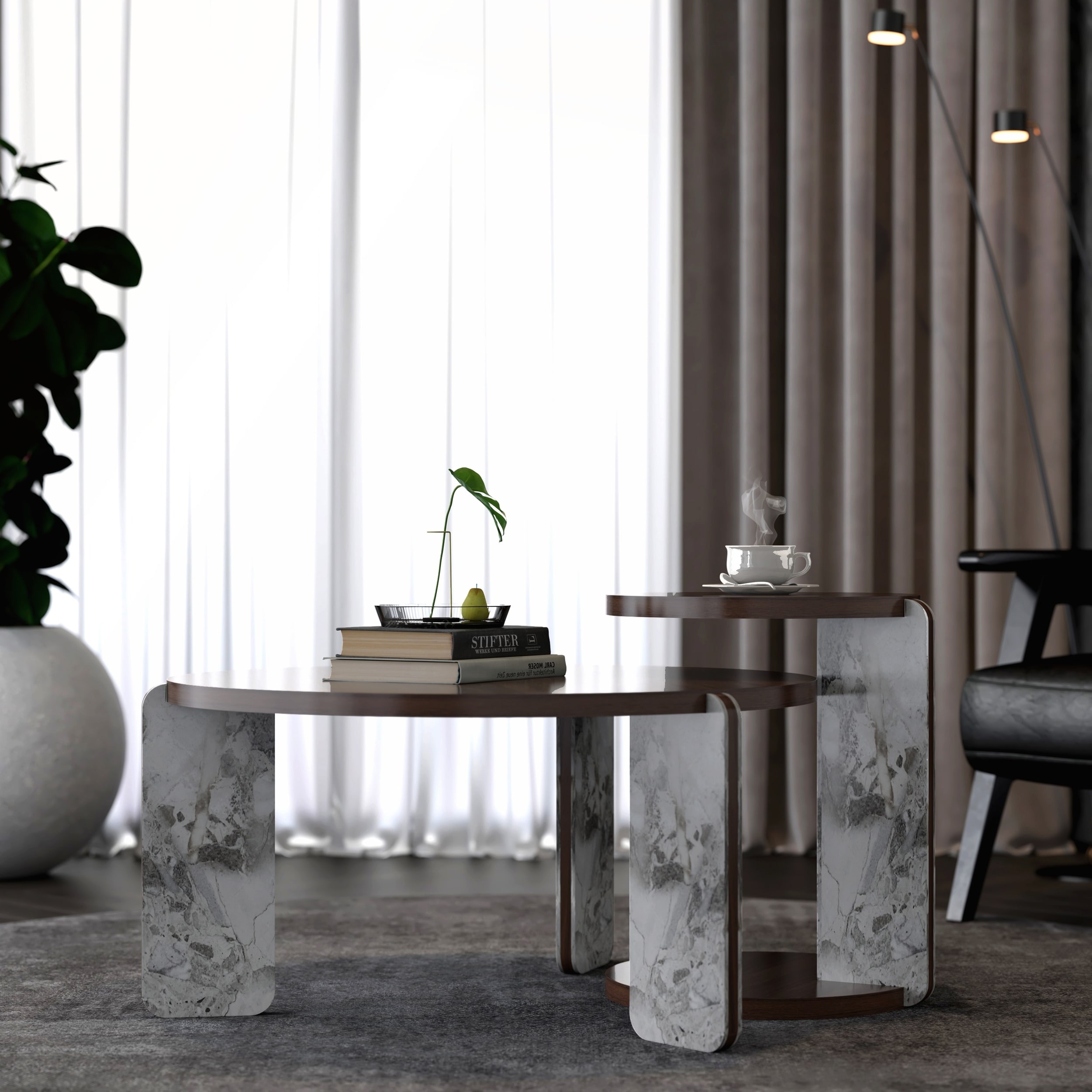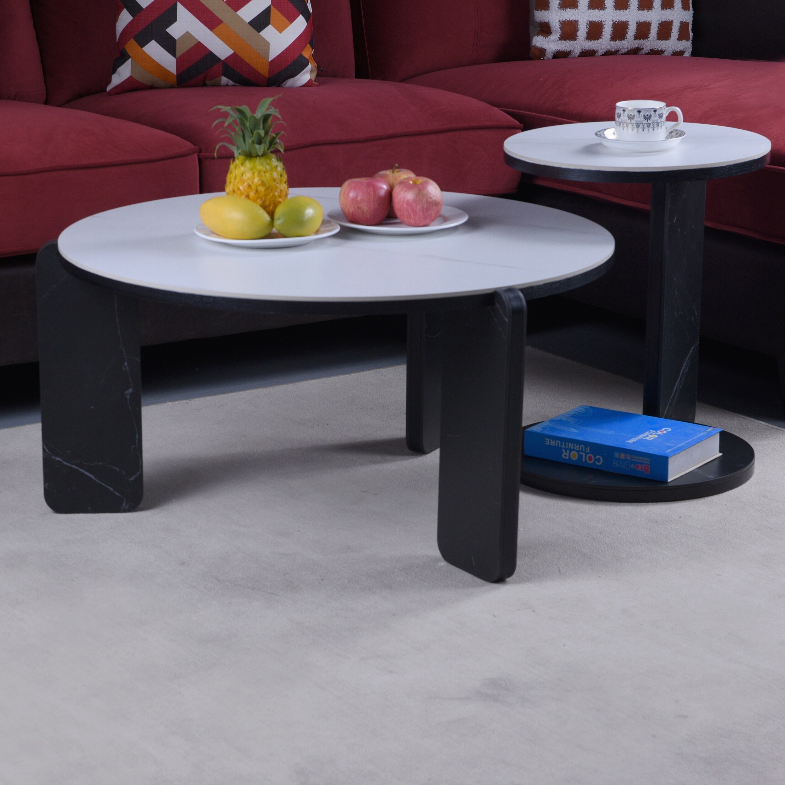 Round Coffee and End Table Set with Sintered Stone Legs for Multi-Purpose Use in Various Rooms