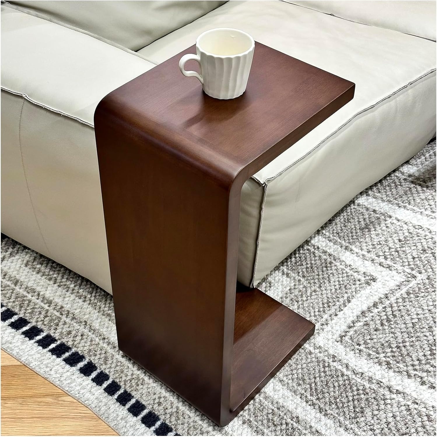 Wooden C-Shaped End Table for Small Spaces, Sofa Side Table, Nightstand for Living Room or Bedroom
