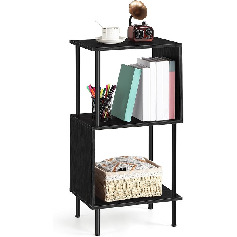 3-Tier S-Shaped Side Table with Open Shelf, Compact Tall End Table for Living Room, Bedroom, Office Corner