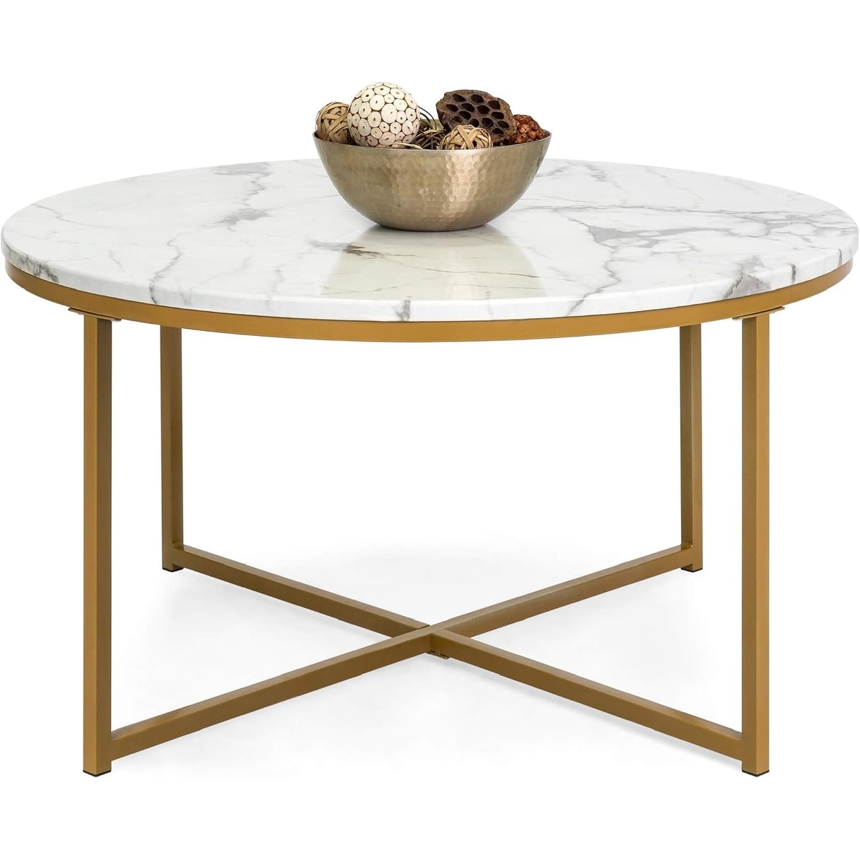 36in Faux Marble Accent Table with Metal Frame - Modern Living Room Coffee Table Decor