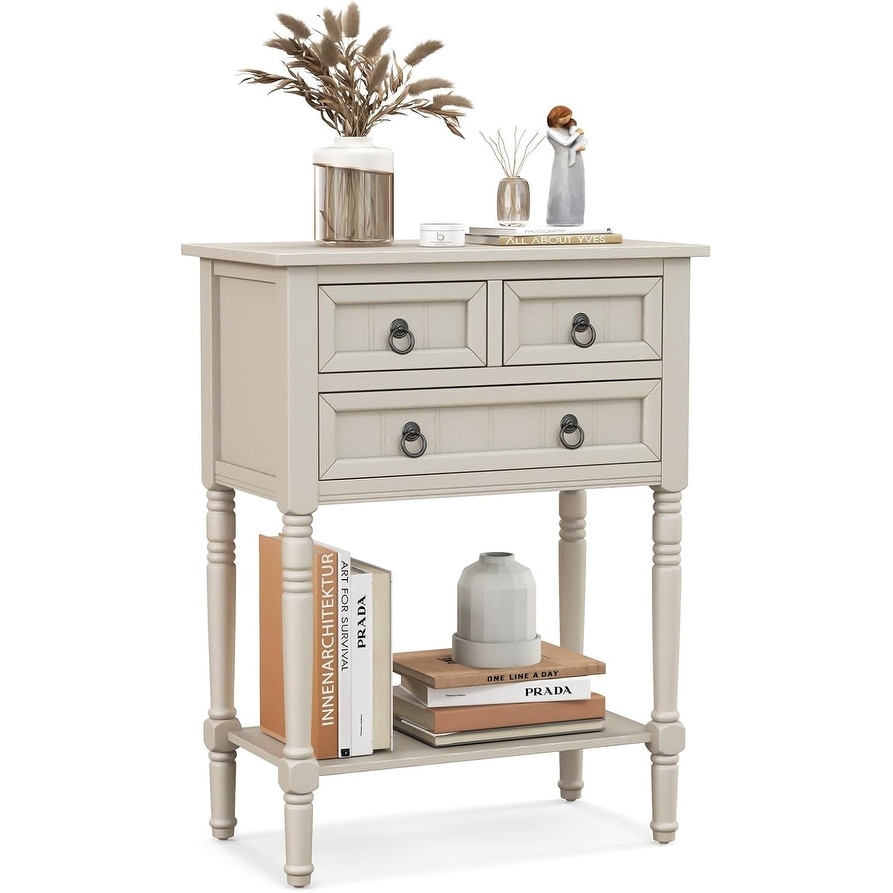 Narrow Console Table with 3 Drawers & Open Shelf, Sofa Side Table for Living Room, Hallway, Entryway, Easy Assembly (Beige)