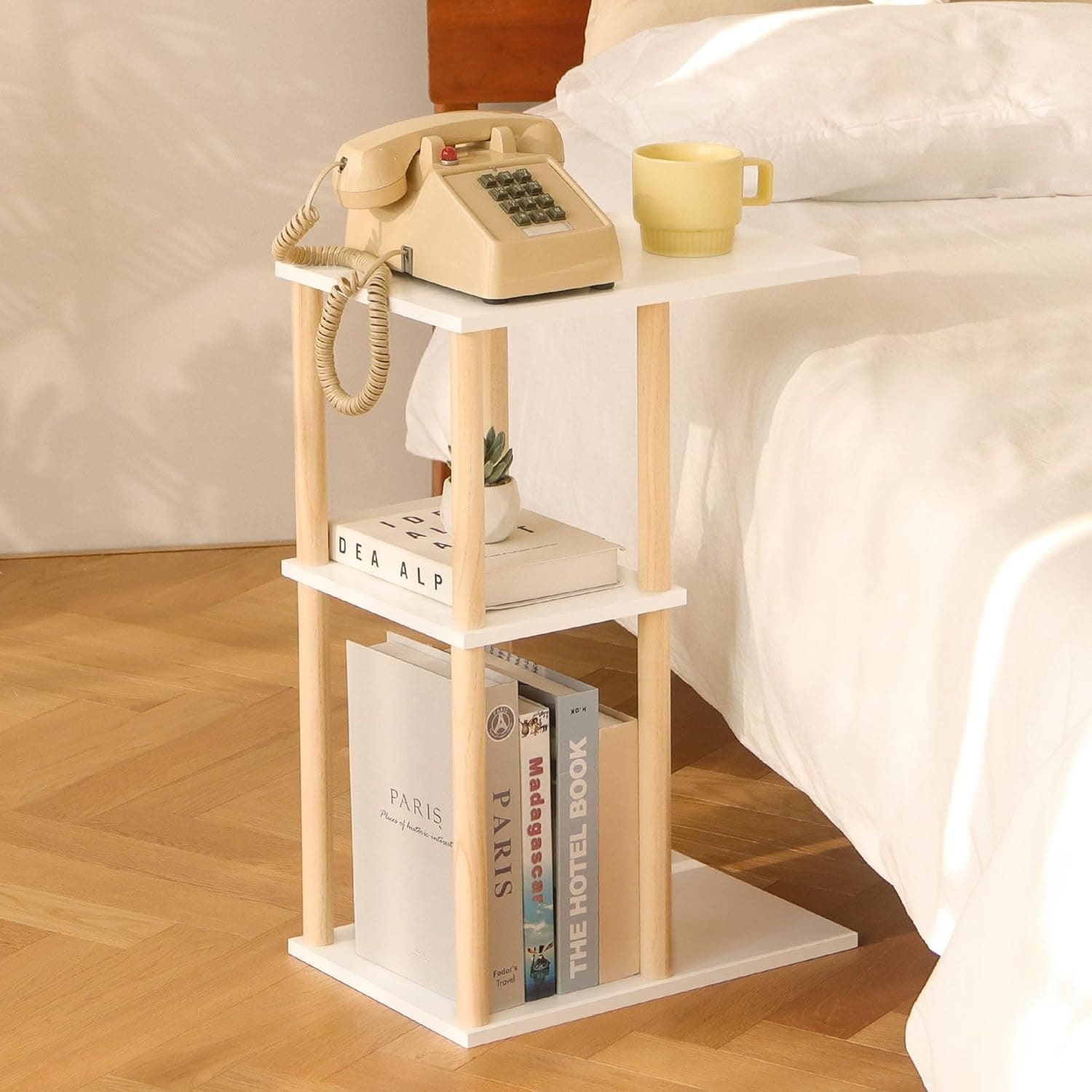 C Shaped End Table, 3-Tier Wood Sofa Table for Living Room, Bedroom, Home Office, Easy Assembly