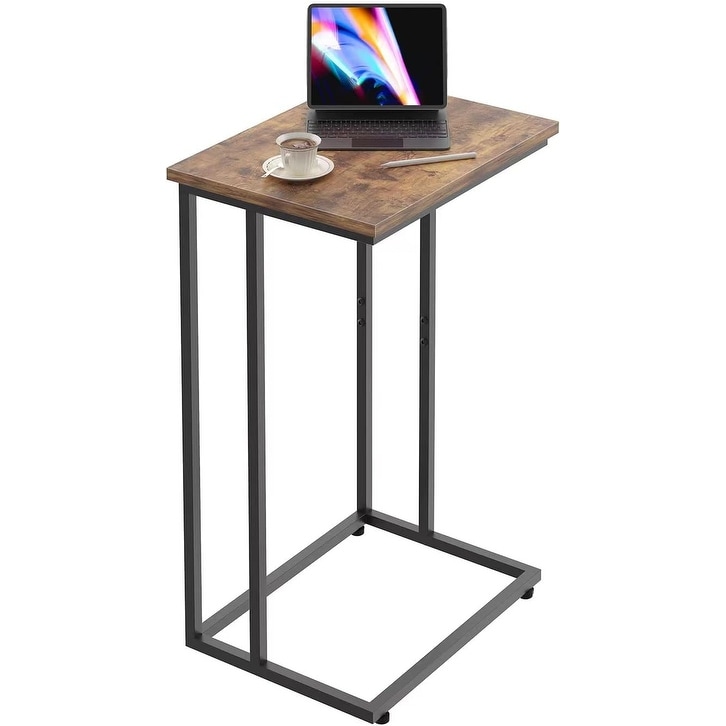 C Table Side Table Set of 2 Living Room Sets C Shaped Couch Tray End Tables Farmhouse, Rustic Brown (017-30BN)