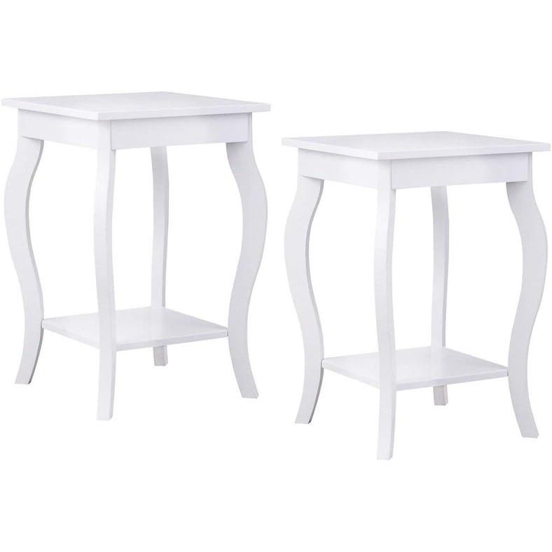 End Table 16" W/Storage & Shelf Curved Legs Home Furniture for Living Room Accent Sofa Side Table Nightstand (2, White)