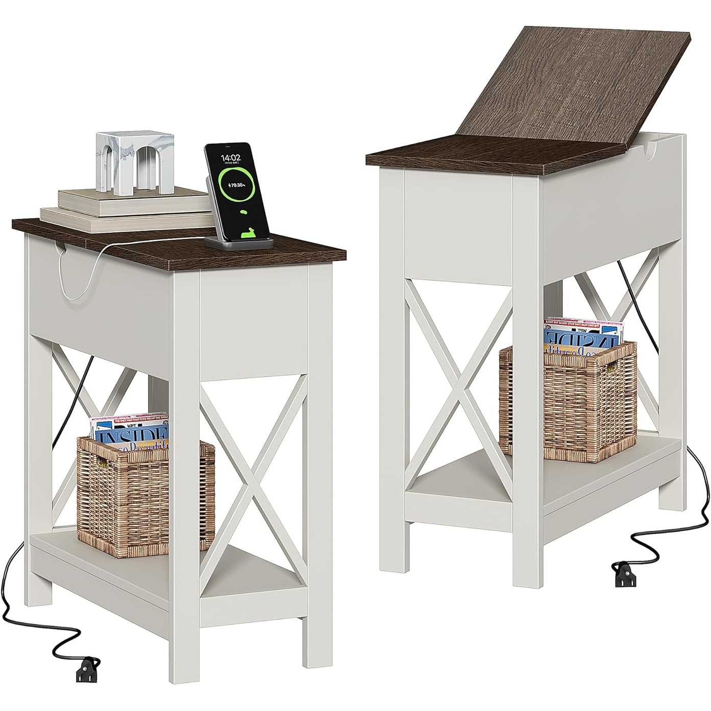 Narrow Flip Top End Table with Charging Station, USB Ports & Outlets, 2 Pack