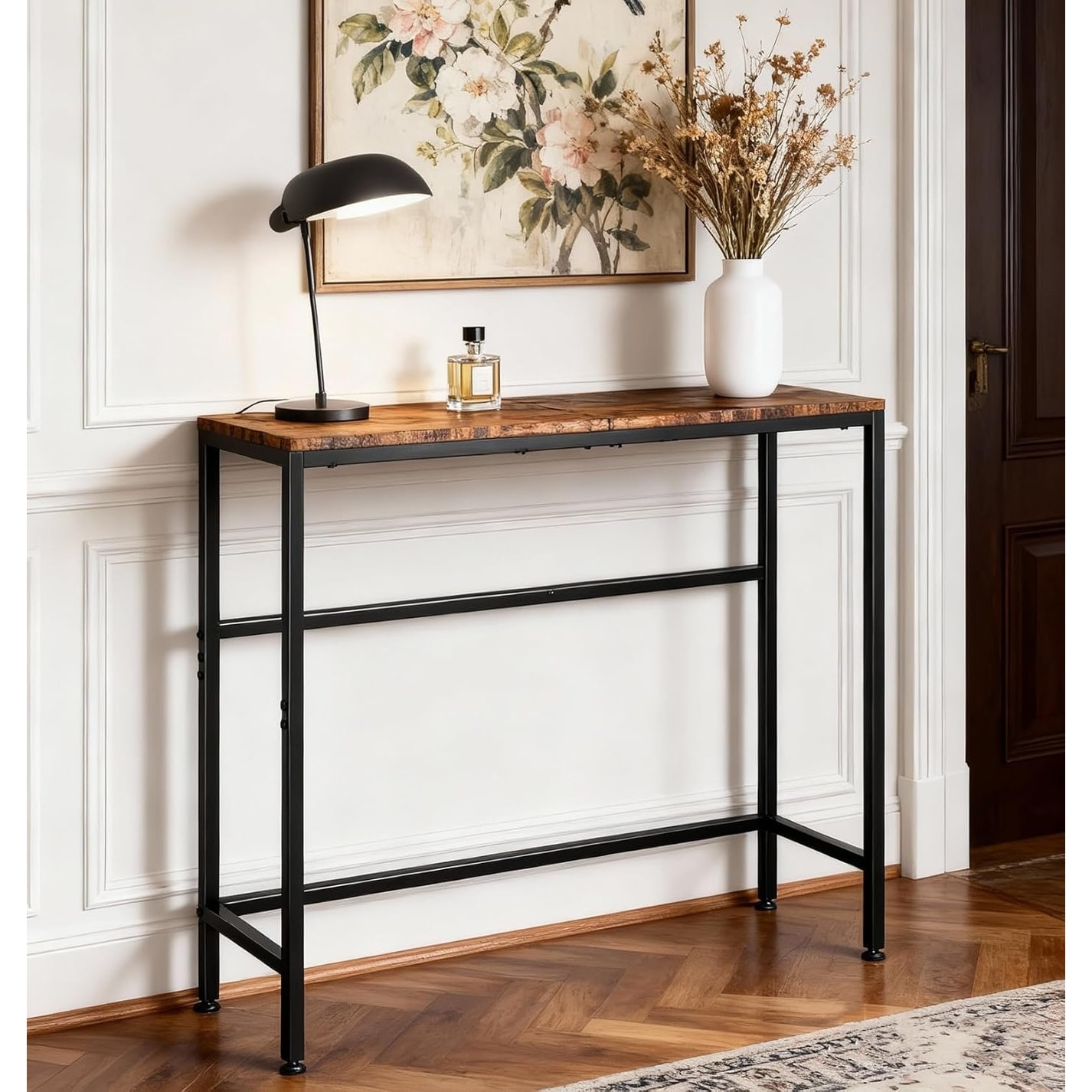 Narrow Industrial Brown Console Table for Hallway, Sofa Side Table