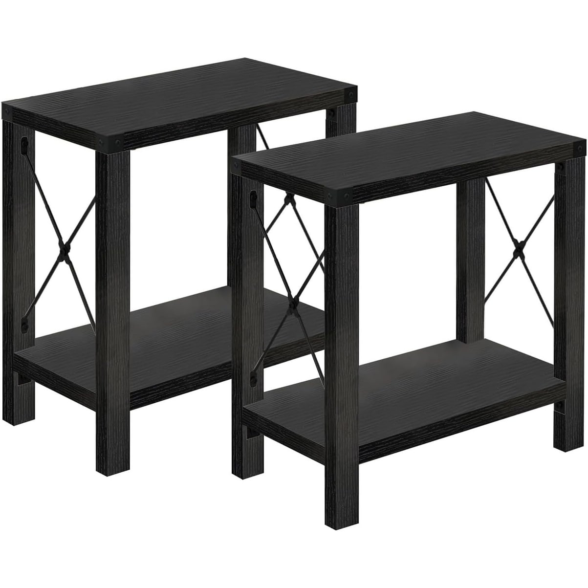 Rustic X-Design Narrow End Table Set with Storage for Small Spaces, Living Room or Bedroom