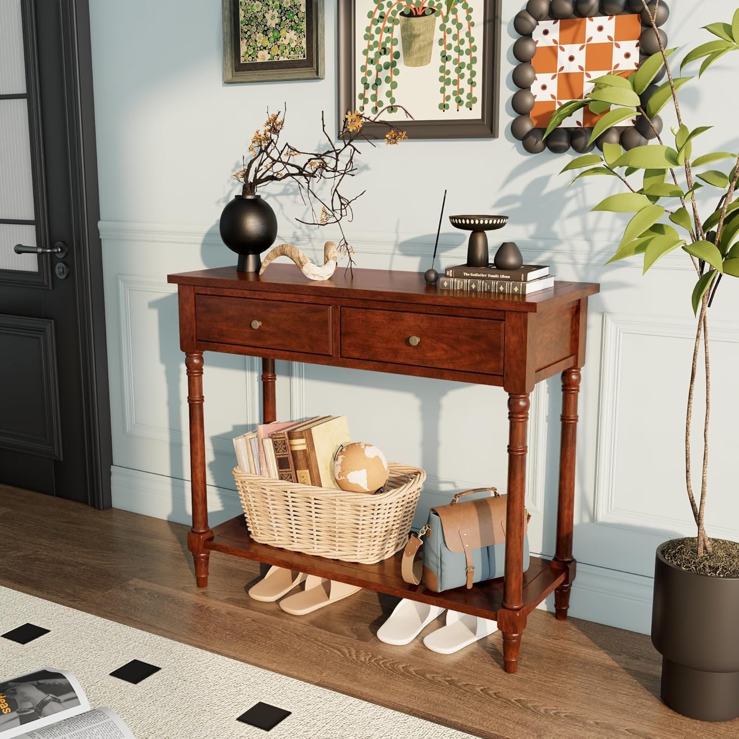 Wood Console Table with Drawers, 35.4" Entryway Sofa Table, Open Storage Shelf for Living Room, Hallway, Office