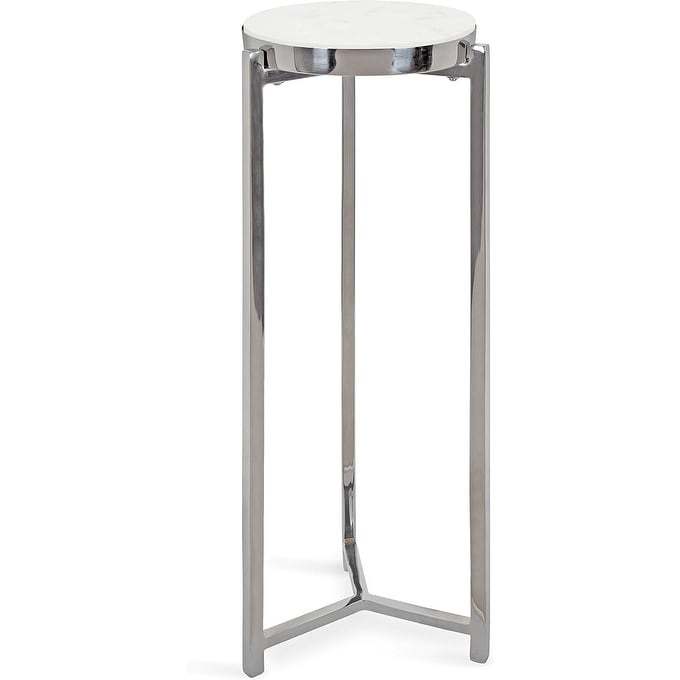 Round Drink Table 8x8x23 Silver White Marble Top Accent