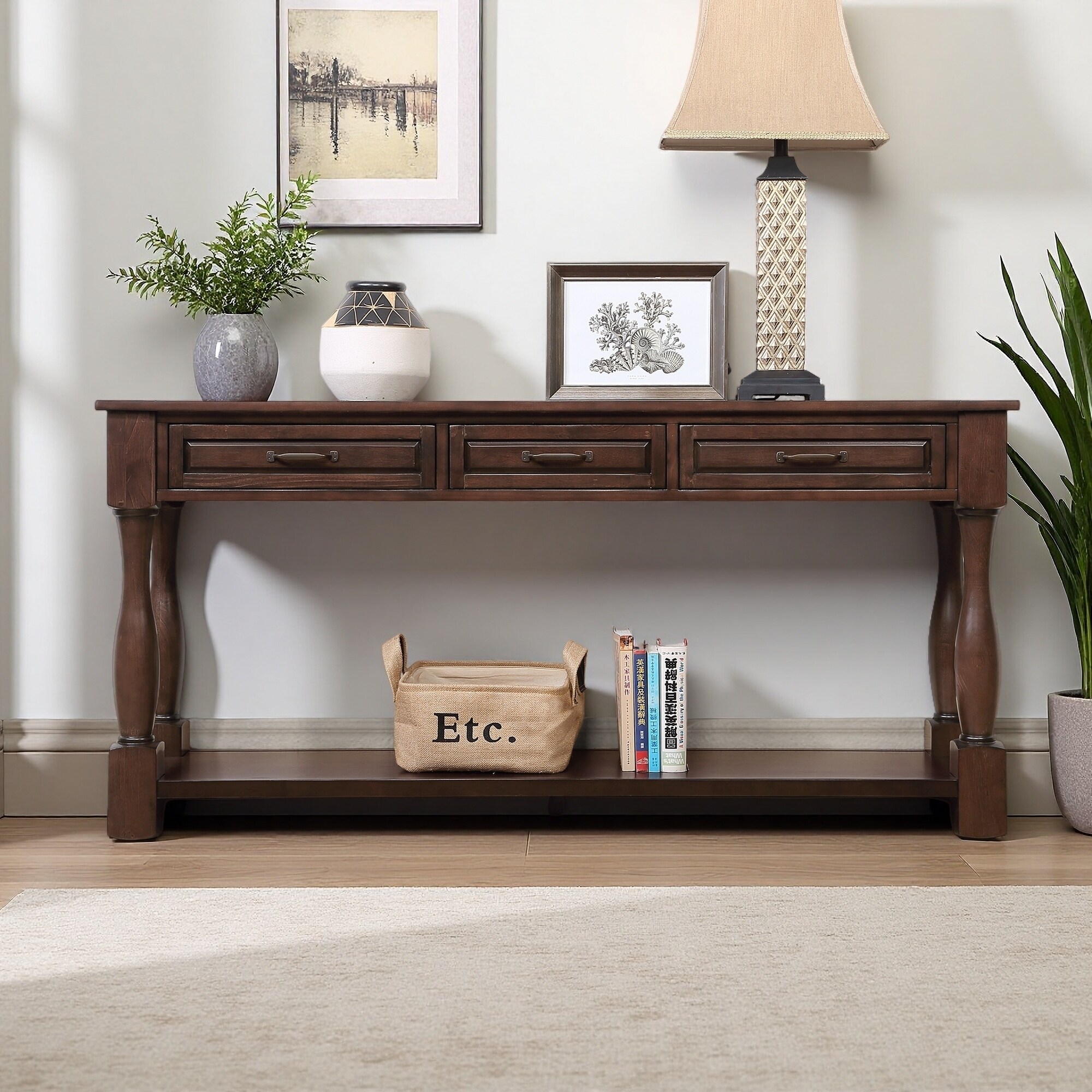 63" Long Solid Wood Console Table with 3 Drawers, 1 Bottom Shelf, and Easy Assembly for Entryway Hallway - Extra-Thick
