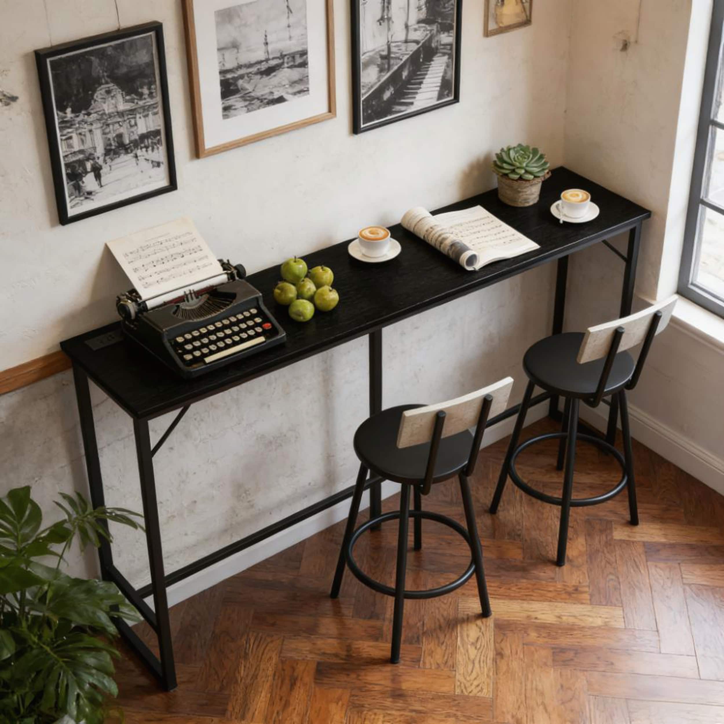 Industrial Rectangular Bar Height Table with Charging Station for Modern and Functional Living Spaces