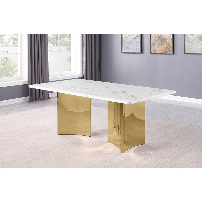 Best Quality Furniture White Marble Table Silver & Gold Stainless Steel Base - N/A