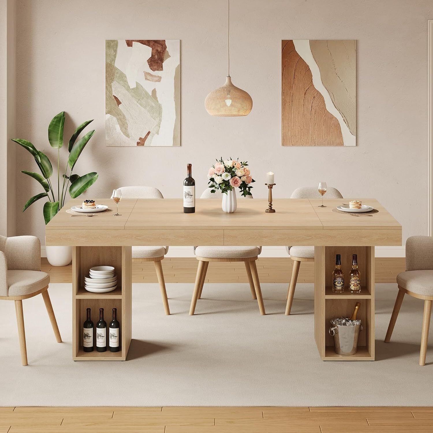 71-Inch Rectangular Dining Table for 6 with Dual-Sided Storage
