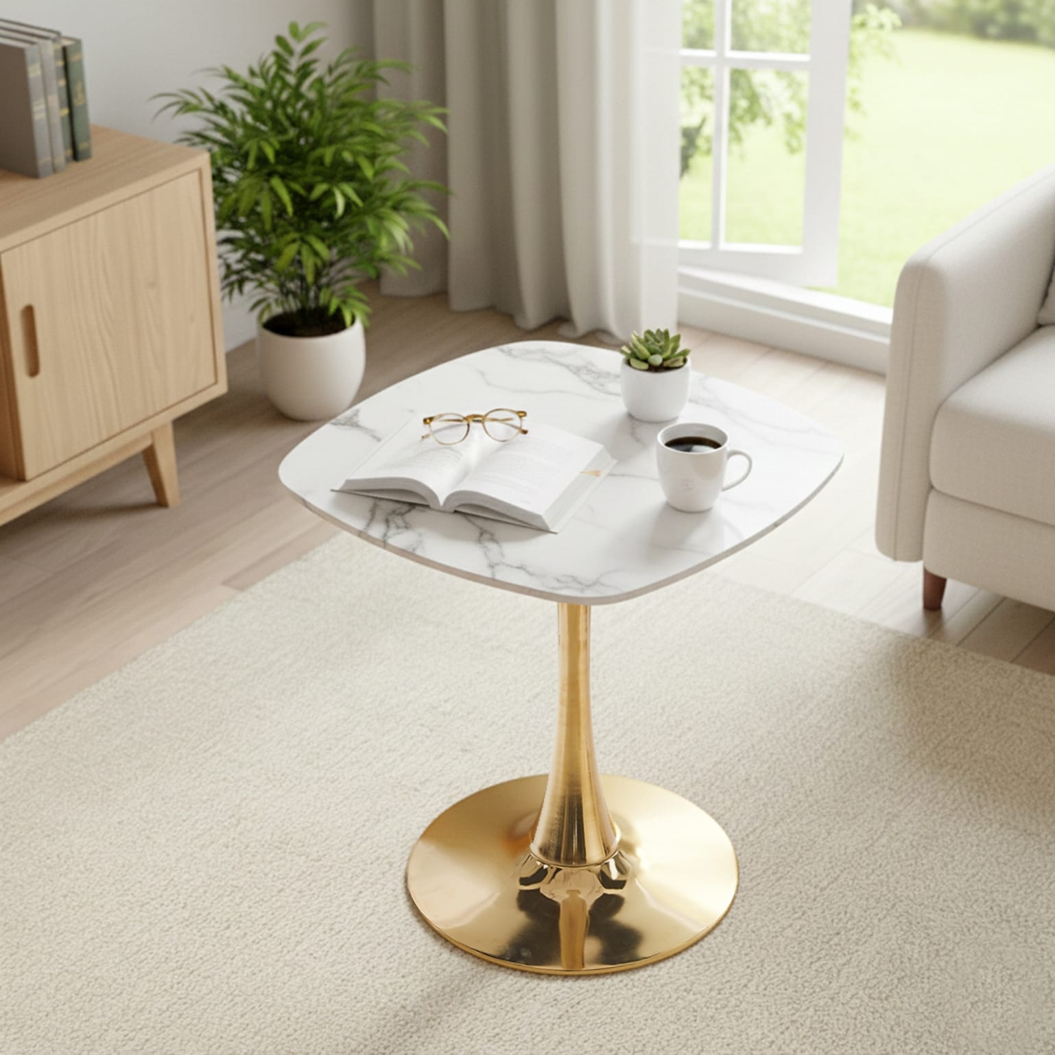 Minimalist Square Dining Table with Rounded Corners & Pedestal Base