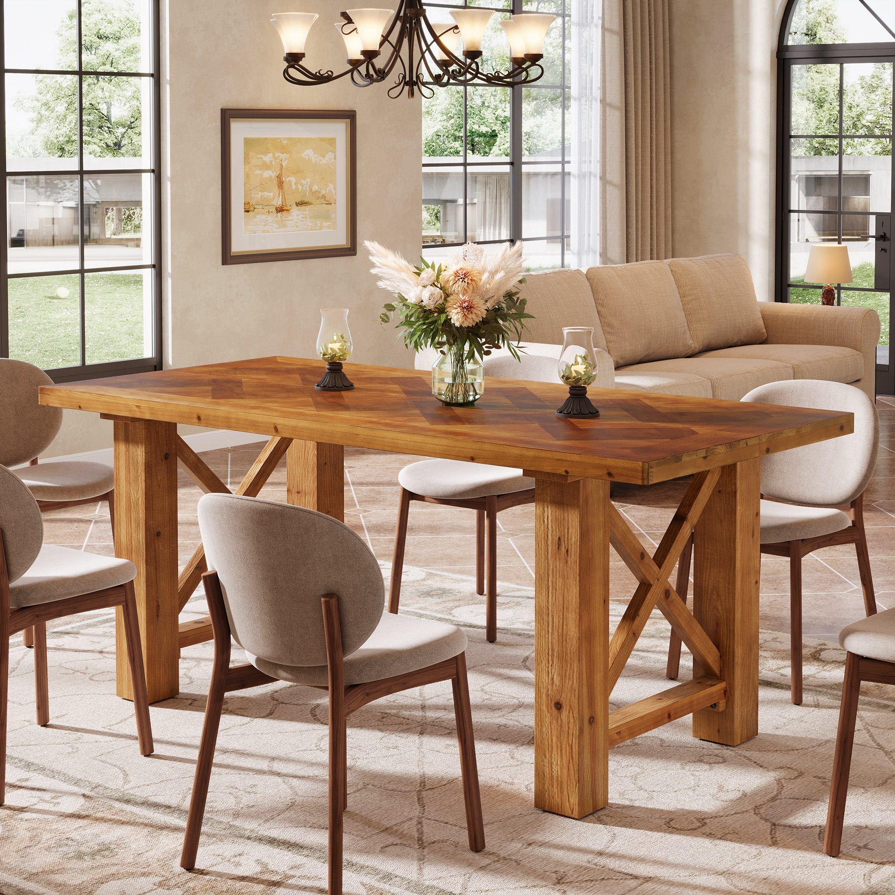 63-Inch Farmhouse Dining Table for 4-6, Solid Wood Kitchen Table