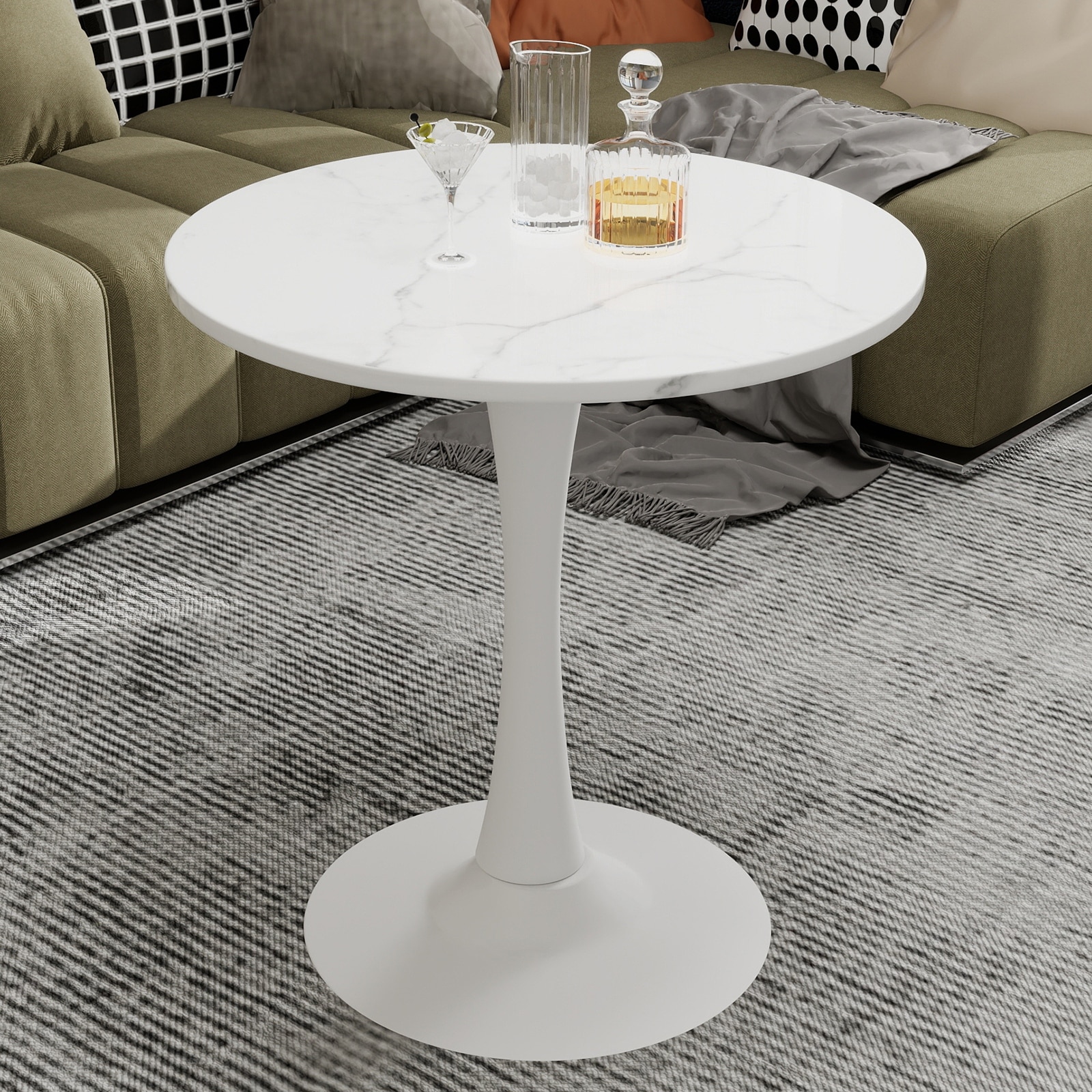 27.6-Inch Mid-Century Modern Style Dining Table, Accommodates 2-4 People, Featuring A Round White-Veined Marble Tabletop