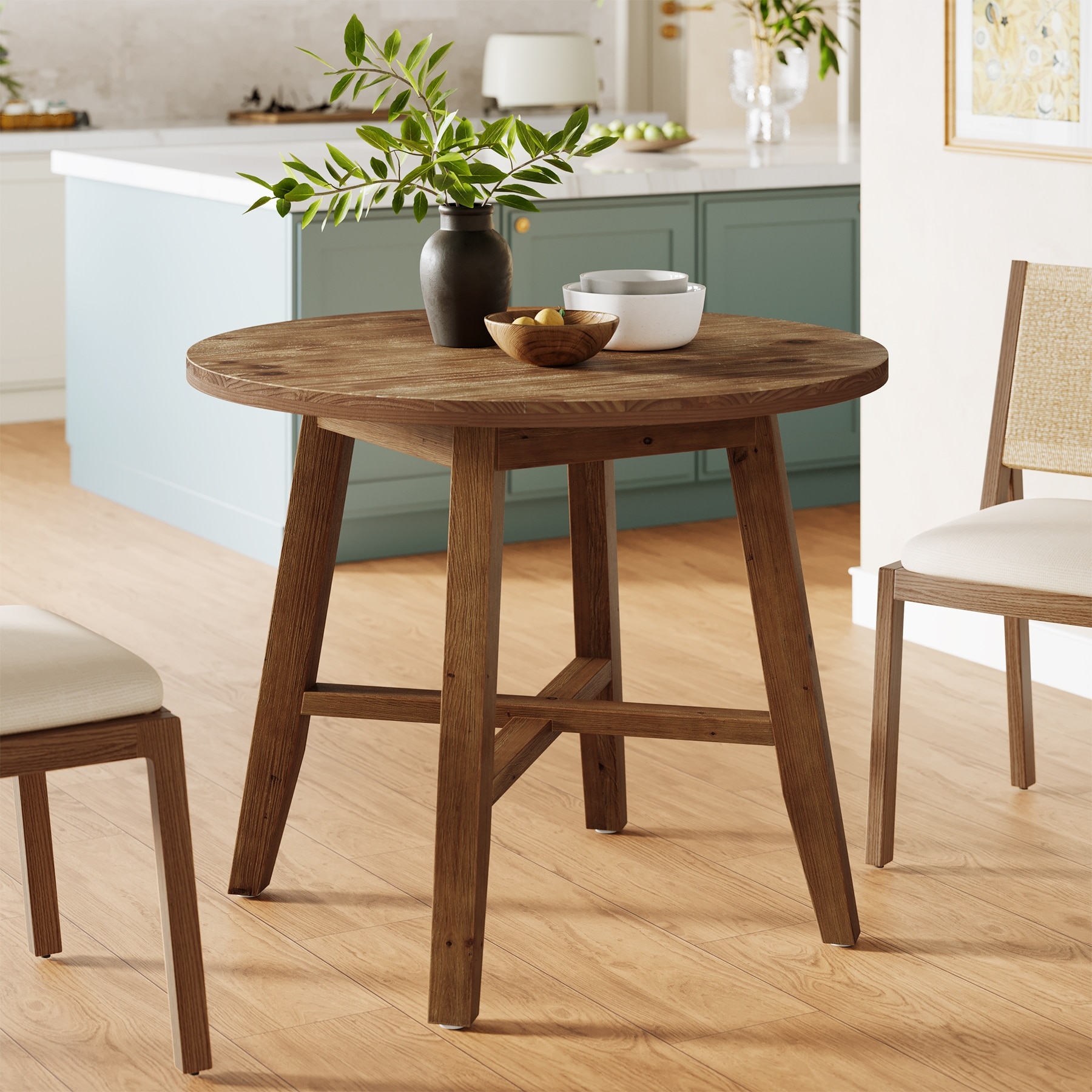 31.5-Inch Round Dining Table, Solid Wood Farmhouse Kitchen Table - N/A